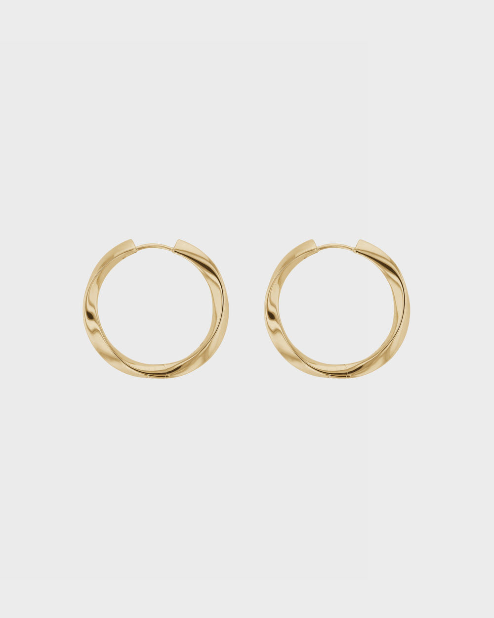 Exploring the silhouette of Australian pipi shells in extruded form, the Twisted Pipi Hoops are an elevated pair of architectural hoops. Suitable for healed piercings only.