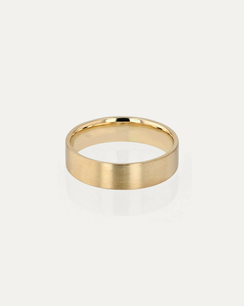 Celebrate your love story with a Sarah & Sebastian wedding band. Our ‘Polished Level II Men’s Wedding Band is minimal, classic, and design-oriented, available in solid 10-karat or 18-karat yellow or white gold. With a slightly wider 2mm band and brushed finish, this ring is timeless, just like your union.