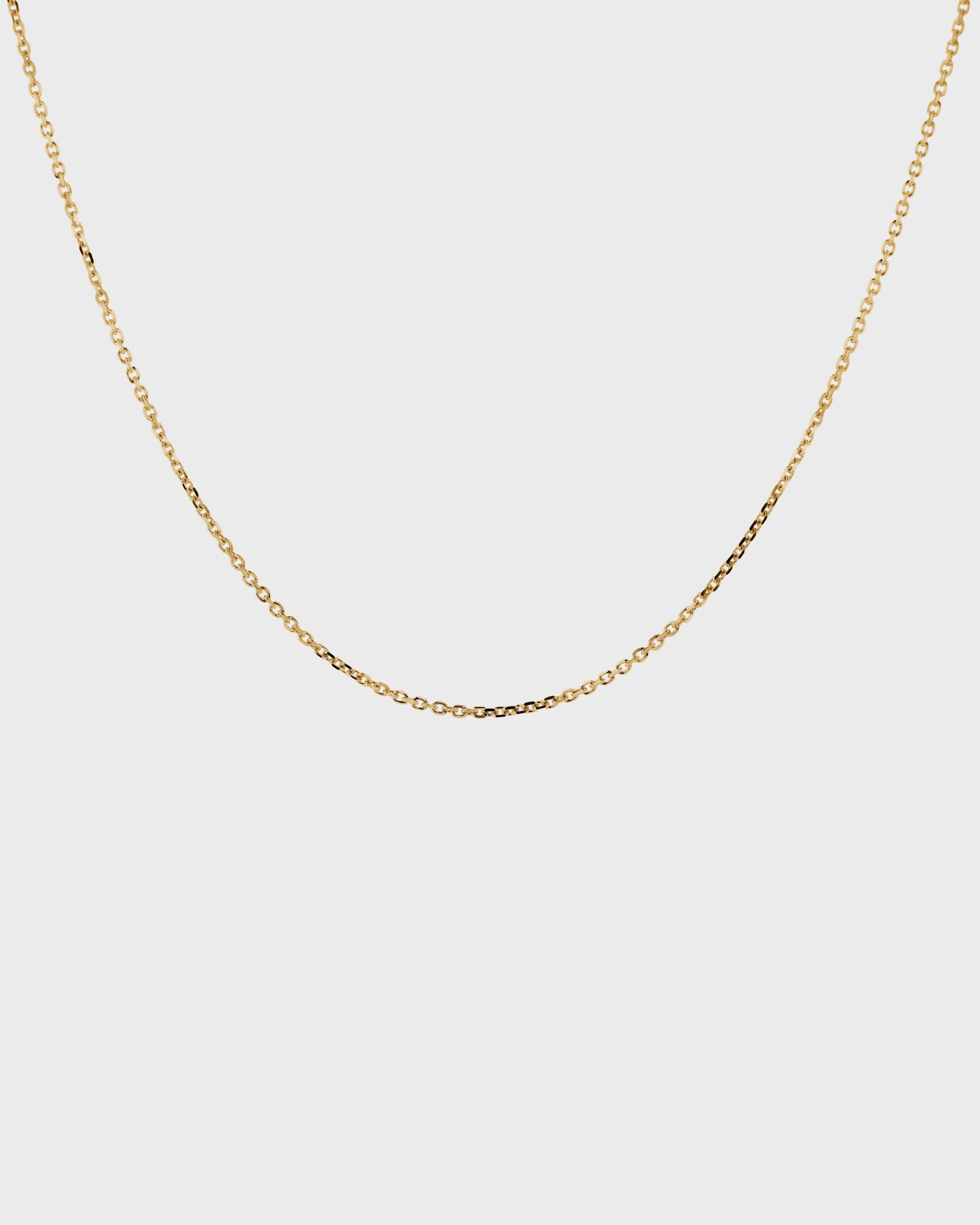 Our signature delicate fine chain in 18 karat gold is an ideal layering piece and easy addition to any jewellery collection. Layer this chain liberally with necklaces, pendants, and chokers of varying lengths—it’s sleek simplicity will immediately pull together any jewellery ‘stack’.