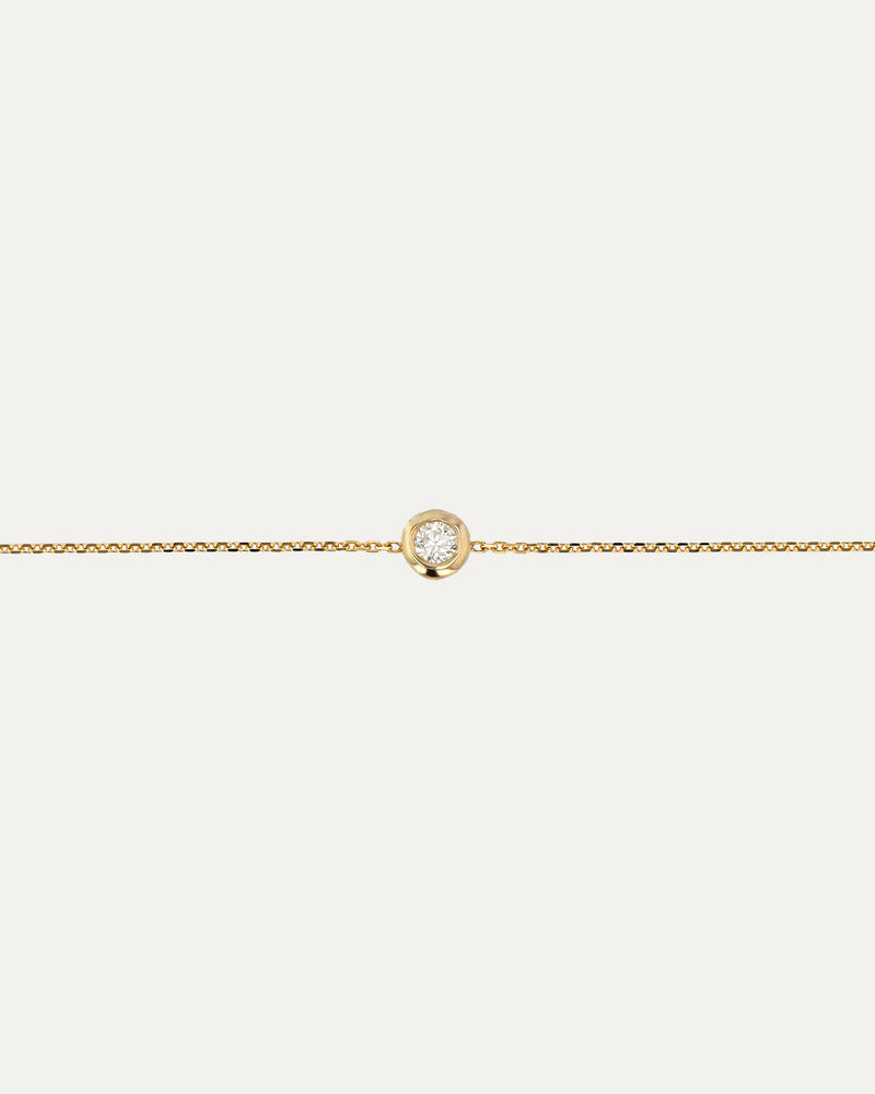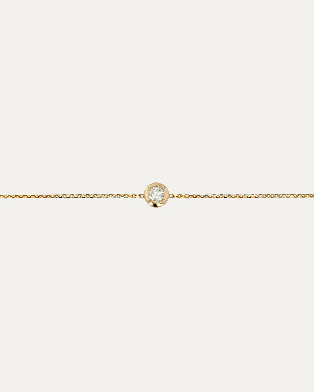Championing a fixed round diamond in a bold bezel setting, the Lunette Soldered Chain is a refined permanent Soldered bracelet. Crafted in 18-karat yellow gold, this piece is custom-fitted during a Soldered appointment and soldered together seamlessly using the traditional jeweller's flame.