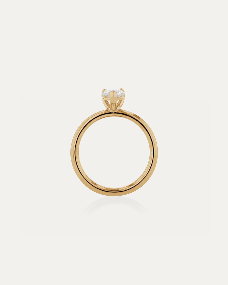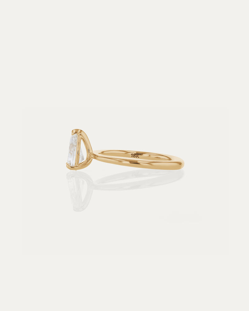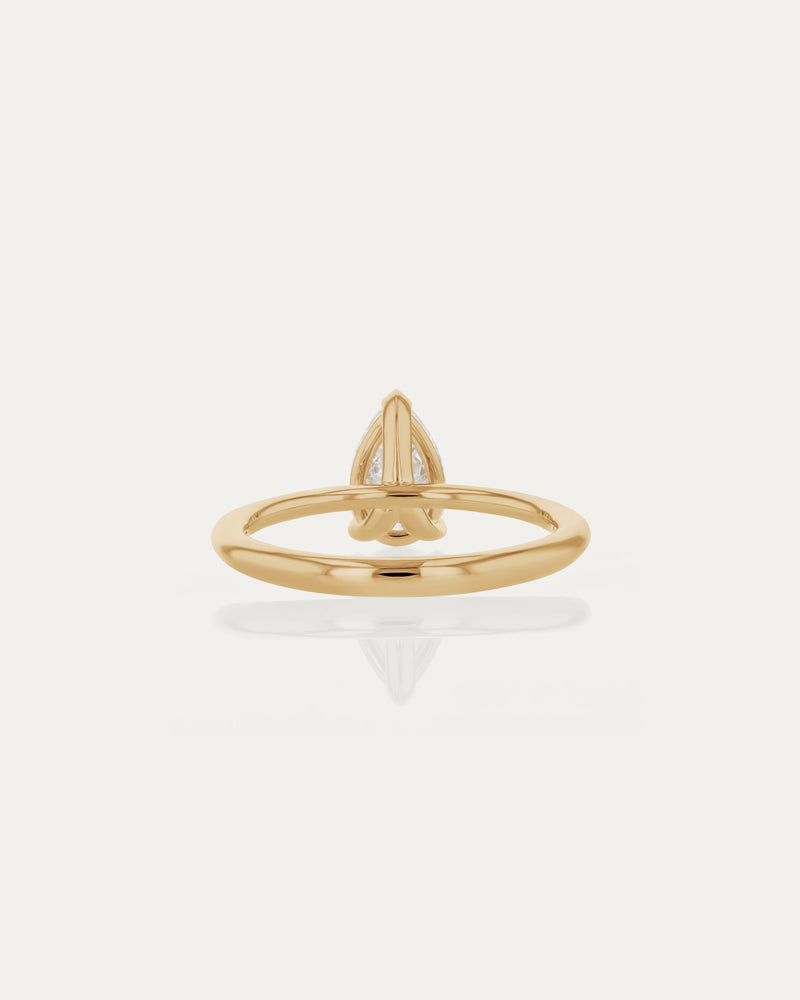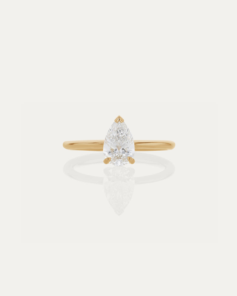 Experiment with design details that make up a SARAH & SEBASTIAN Engagement Ring. The Pear Engagement Ring features a 3 claw pear cut diamond on a fine band. All elements of this ring including band style, metal, carat and colour can be made bespoke as per your budget and request.