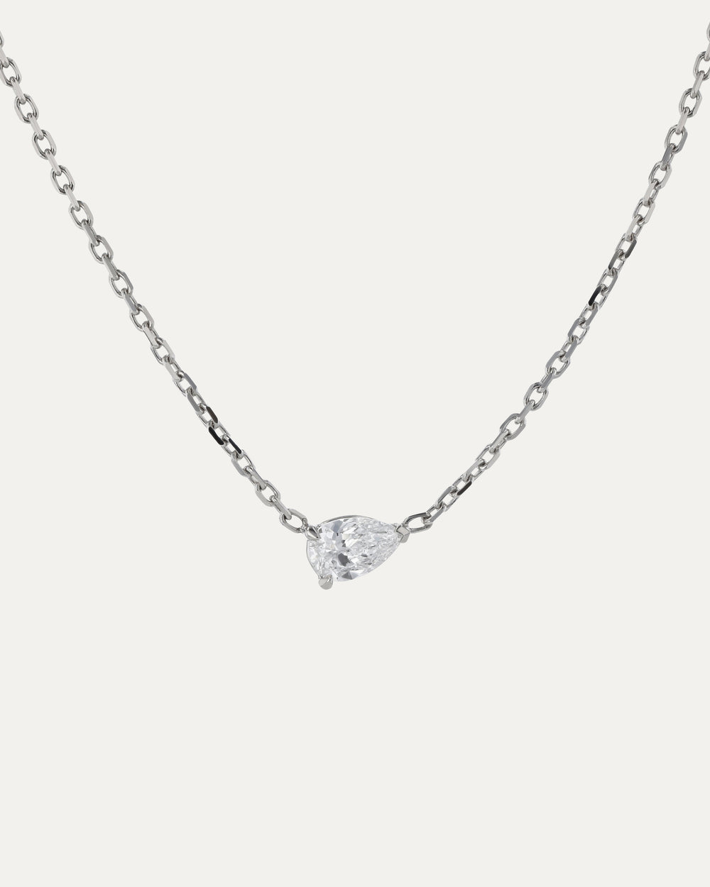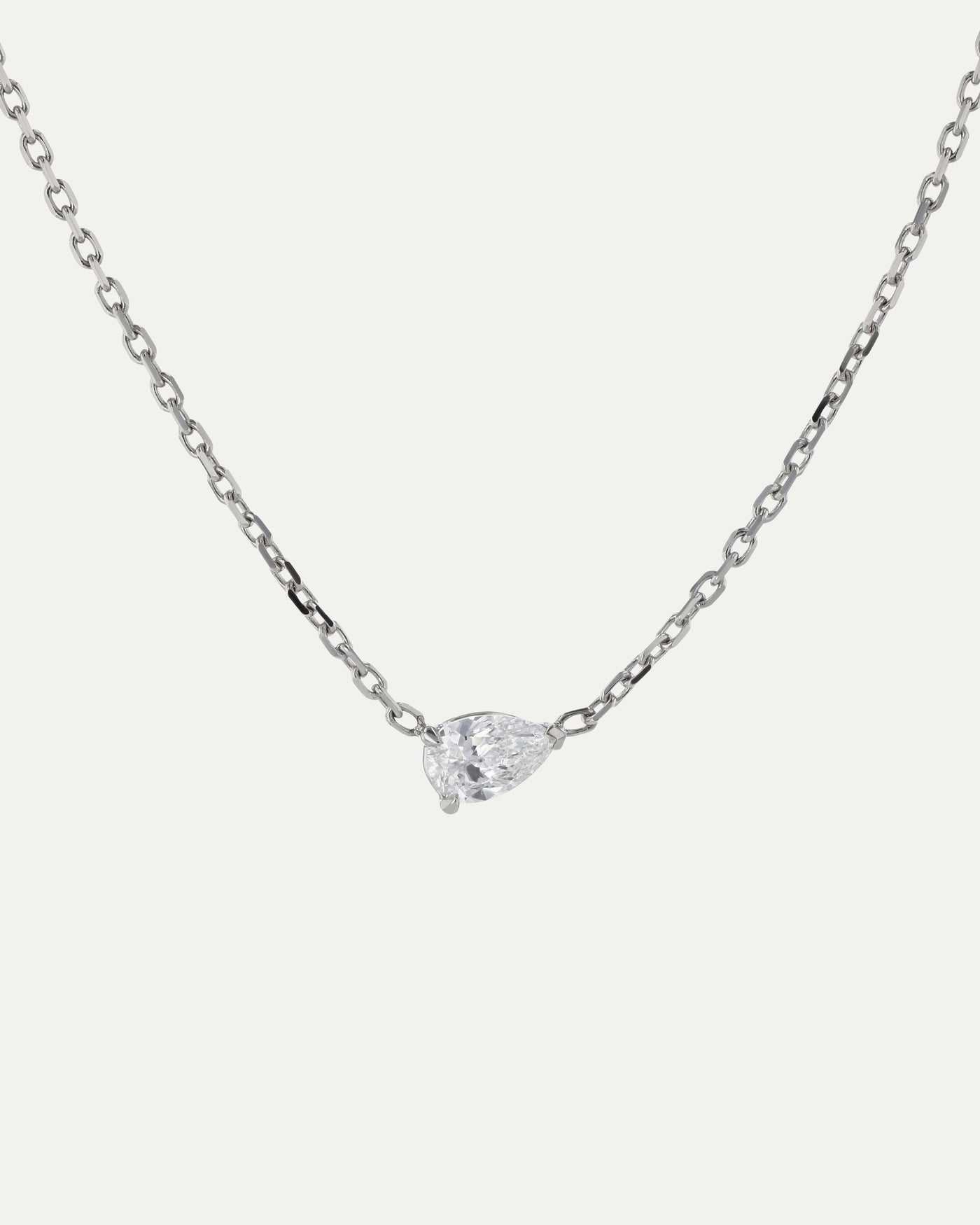 Our Solitaire Pear Diamond Necklace is strung with a dainty round cut diamond. Cast from solid 18-karat gold, it's suspended from our signature bold chain. A piece so delicate it gives the appearance of ‘floating’ on the neckline, let this piece speak quiet volumes on its own, or layer it with other fine necklaces from your collection.