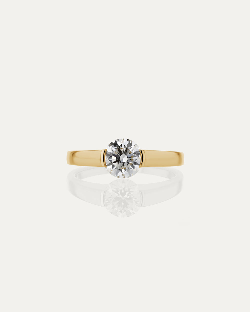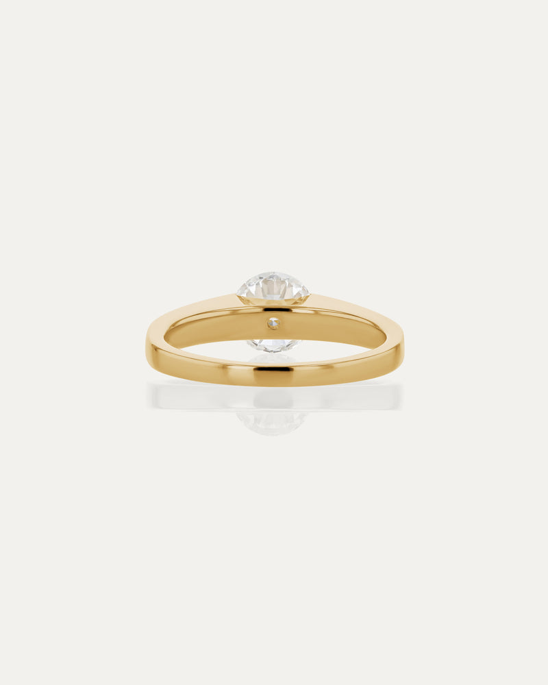 The Suspense Round Ring takes its inspiration from a tension style setting, creating the illusion of a floating diamond, horizontally set on thick tapered band. Experiment with design details that make up a SARAH & SEBASTIAN Engagement Ring. Elements of this ring including band metal, carat and colour can be made bespoke as per your request. From price is based on a 0.5ct, F colour and VS2 clarity diamond on a 18k gold band.