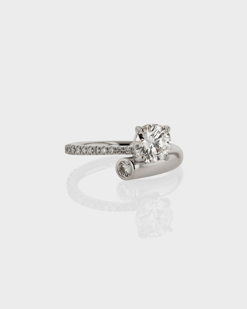 Re-imagining the classic Toi et Moi profile, this diamond-forward alternative to the