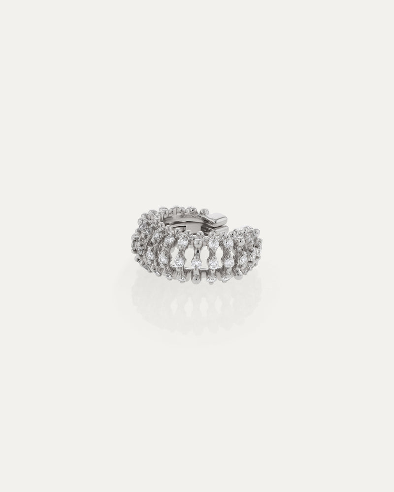 The Diamond Medusa Ear Cuff delivers monumental yet refined style. It’s crafted from 18 karat solid white gold and finished with natural white diamonds for total splendour. Casting an intricate, voluminous silhouette that captures the light, this piece is inspired by the allure of sea jellies rising from the depths of the ocean.