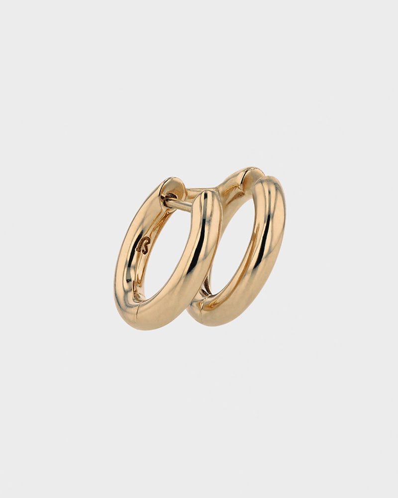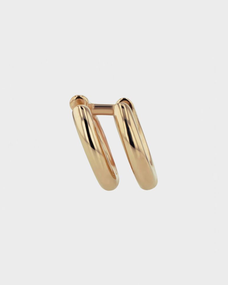 A sleek iteration of our Double Ouroboros Hoop, the Double Tube Hoop features a unique titled design that follows the contours of the ear. The first hoop in this duo hooks into a single piercing, whilst the second hoop sits as a cuff, creating the illusion of a double hoop. Refined in polished 18-karat yellow gold, this piece is designed to build a maximalist Ear Alchemy™, layered with other hoops, studs and cartilage earrings from the SARAH & SEBASTIAN collection.