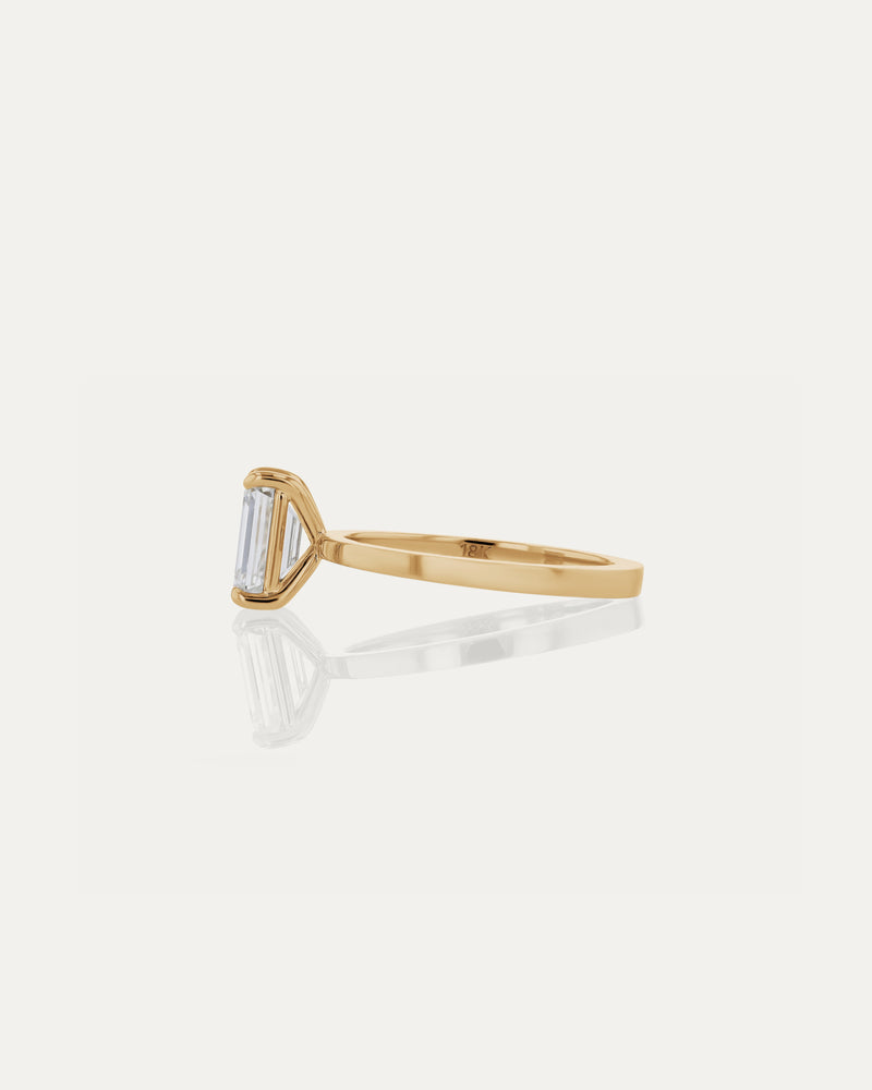 Experiment with design details that make up a SARAH & SEBASTIAN Engagement Ring. The Emerald Engagement Ring features a 4 claw emerald cut diamond on a fine band. All elements of this ring including band style, metal, carat and colour can be made bespoke as per your budget and request.