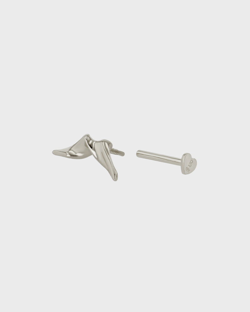 A sculptural stud earring designed for unique Ear Alchemy styling, the Fine Kelp Cartilage Earring echoes the organic, fluid twist of Golden Kelp found in Australia's Great Southern Reef. Crafted in platinum, this piece is sold as a single and is suitable for healed piercings only, featuring our internally threaded post and signature flat heart backing.