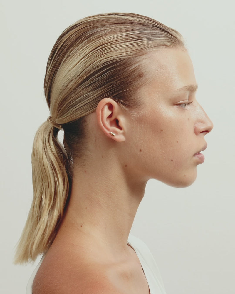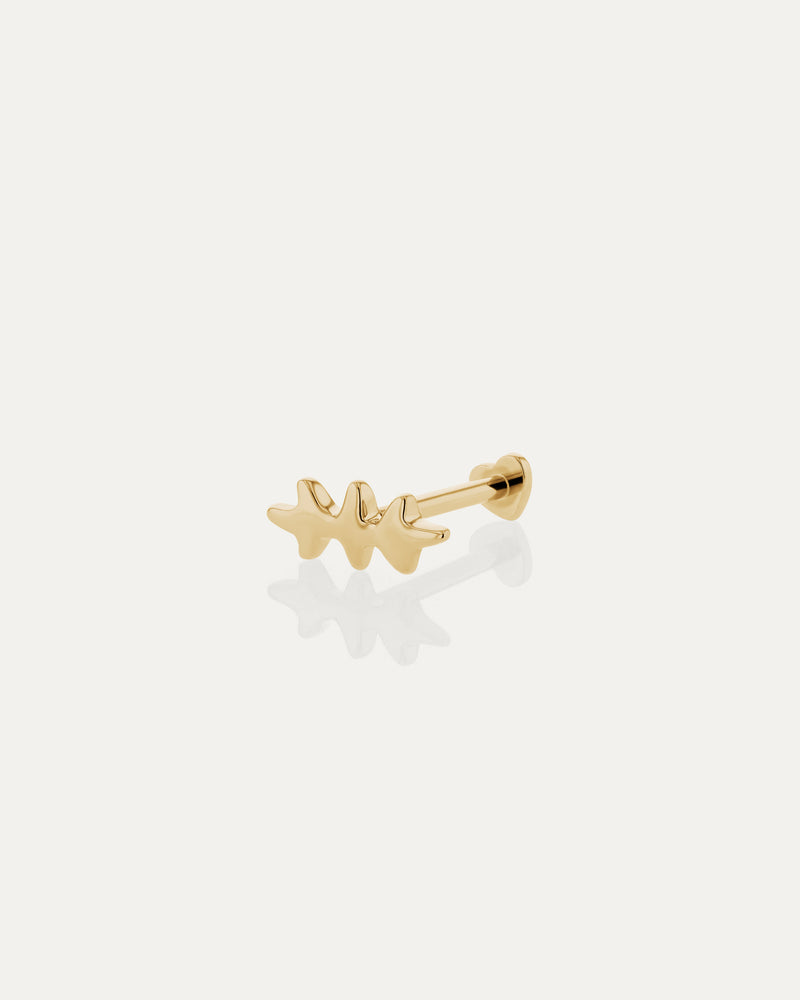 Inspired by the ritual of searching for hidden gems in the sand, the Fishbone Cartilage Earring brings ocean-inspired charm to Ear Alchemy styling. A delicate piece made from 18k solid yellow gold, this internally threaded earring is specifically designed for cartilage piercings and is suitable for initial piercings. Sold as a single piece.