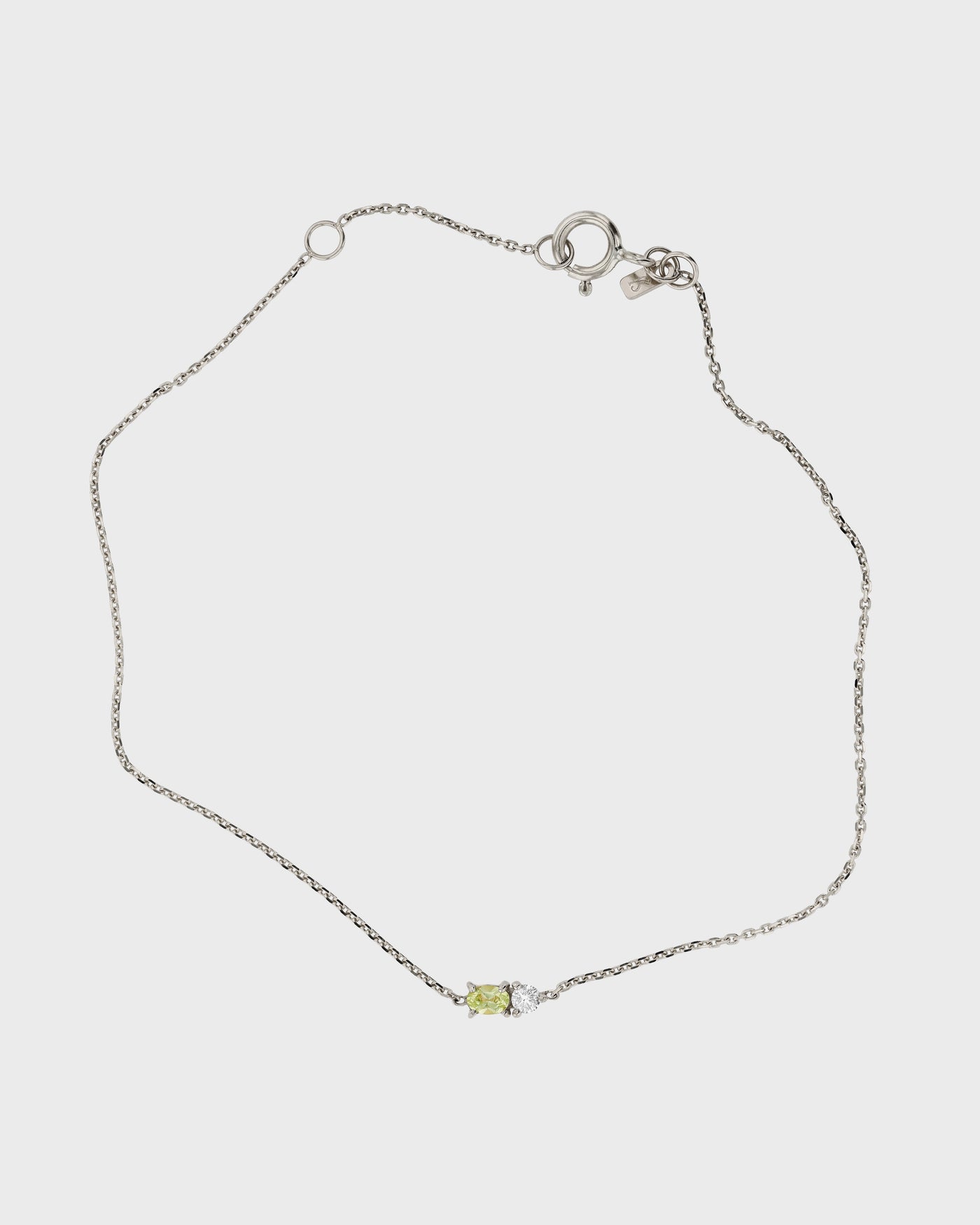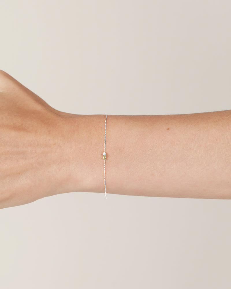 Handcrafted in 18-karat gold, the Micro Sand Diamond Bracelet was inspired by the unique beauty of sand at a microscopic scale. Featuring a dewy peridot cabochon and diamond cluster set on our signature fine chain.