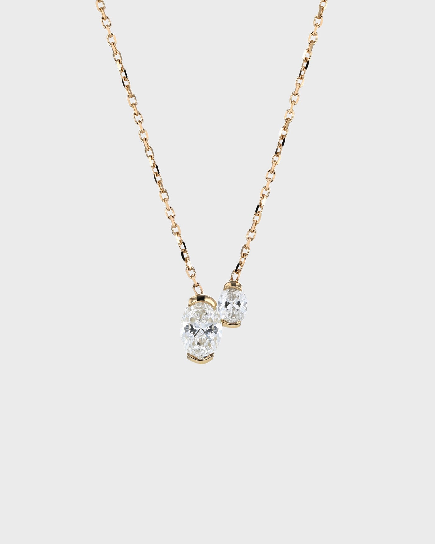 Named after the French saying meaning 'you and me', the Oval Toi Et Moi Necklace is a one of a kind piece, symbolising the power of unity. It heroes two asymmetric oval-cut diamonds with a suspense setting. Elements of this necklace including chain length and diamond carat can be made bespoke upon request. From price is based on a 0.5ct feature stone and 0.25ct secondary stone, F-G colour and VS-SI clarity diamond in 18-karat gold.