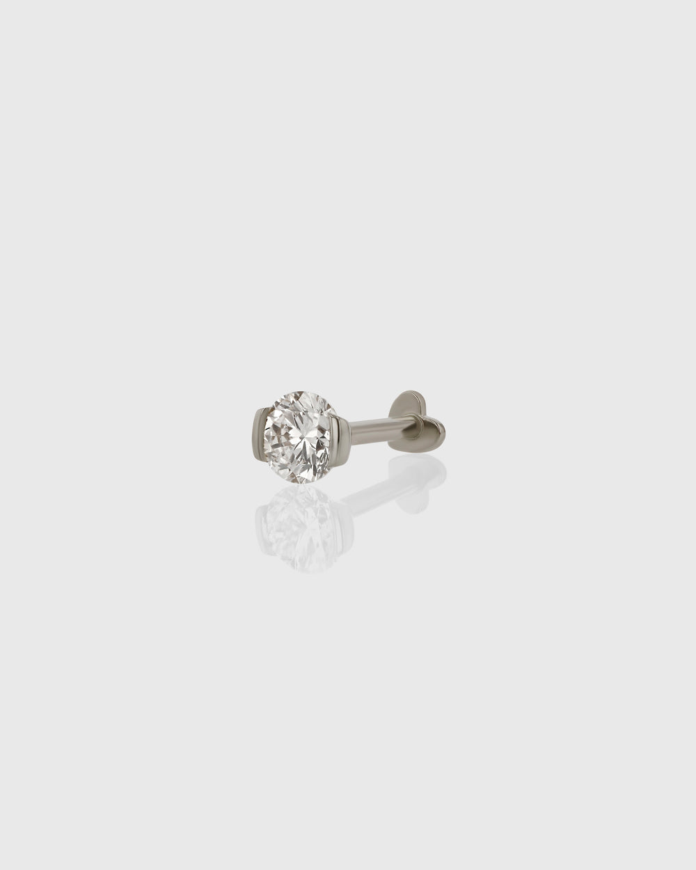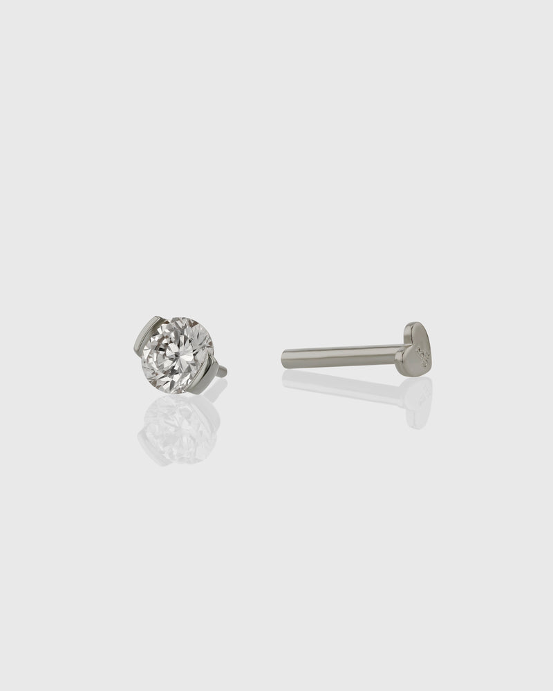 Build a brilliant Ear Alchemy with the Round Suspense Cartilage Earring featuring an internally threaded post for smooth fit and comfort and our signature flat heart backing. Sold as a single piece, it heroes a 0.25-carat round-cut natural diamond held in balance with our suspense-style setting.