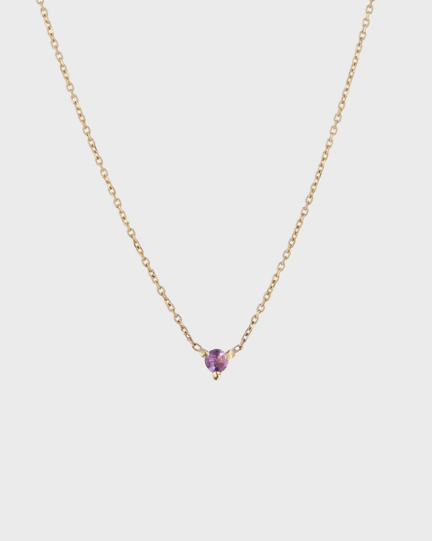 The Amethyst Birthstone Necklace is made in 14-karat gold and strung on our signature fine chain. Featuring precious gemstones corresponding to the month you were born. February's amethyst has the symbolic meaning of passion & hope to calm the spirit.