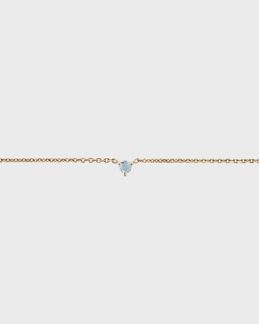 The Petite Aquamarine Birthstone Bracelet is made in 14-karat gold and strung on our signature fine chain. Featuring precious gemstones corresponding to the month you were born. March's aquamarine has the symbolic meaning of creativity, health & overall happiness.