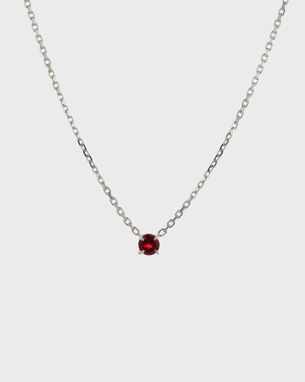 The Ruby Birthstone Necklace is made in 18-karat gold and strung on our signature bold chain. Featuring precious gemstones corresponding to the month you were born. July's ruby has the symbolic meaning of strength & courage & remover of negative energy.