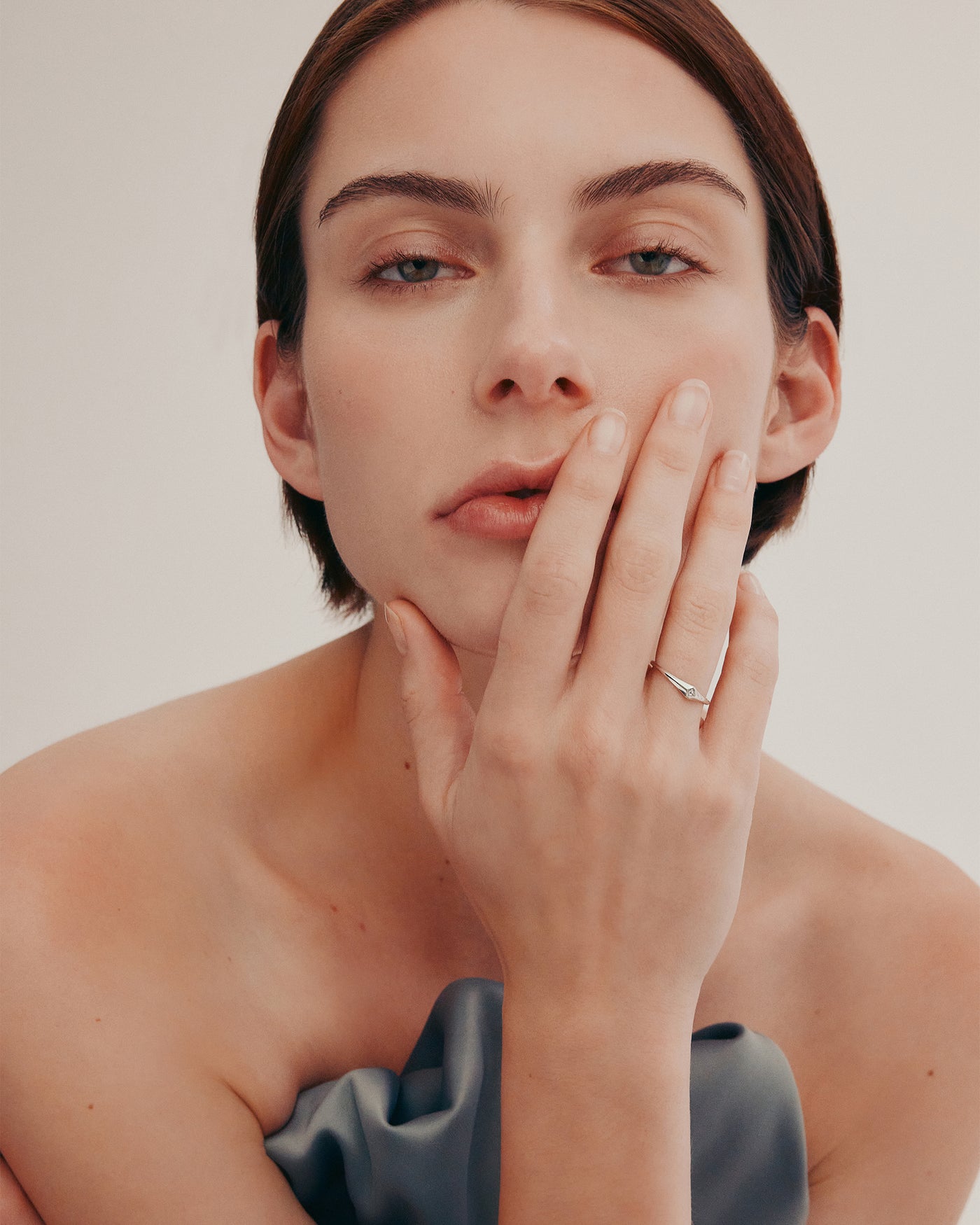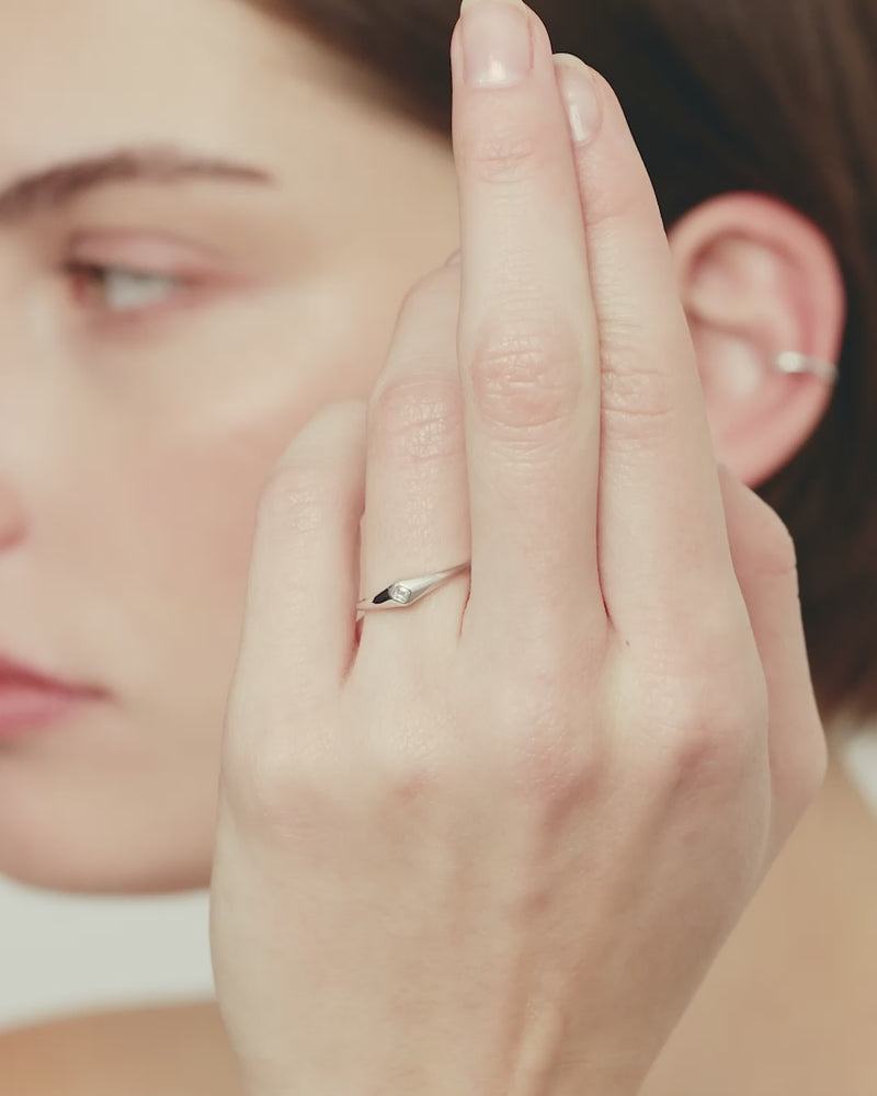 Designed in our Sydney studio, the Zenith Ring is crafted in 18k white gold with an angular silhouette, punctuated by a bezel-set Asscher-cut white diamond chosen for its symmetry and shine. This is where light meets design, and architectural structure elevates meaning.