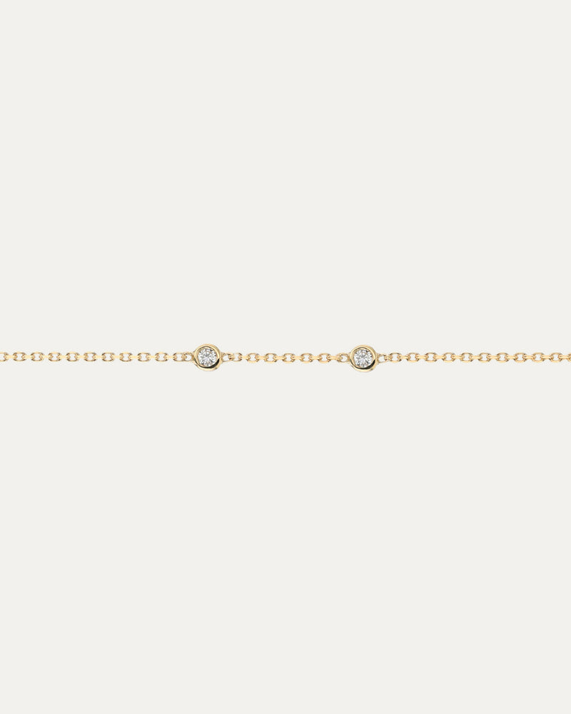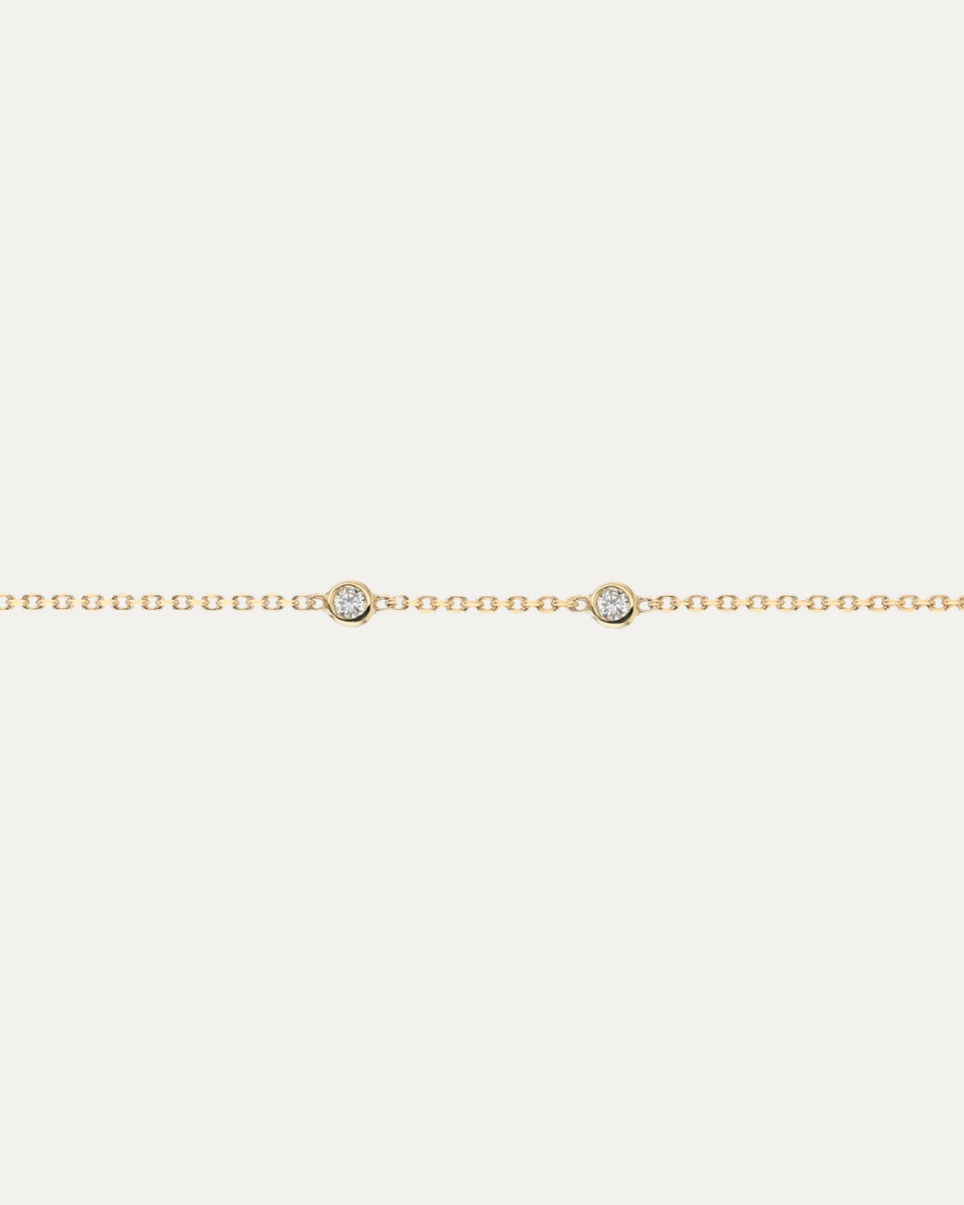 One of our most cherished designs, the Diamond Soldered Chain 02 is a refined delicate style for a permanent Soldered bracelet featuring two fixed petite diamonds.