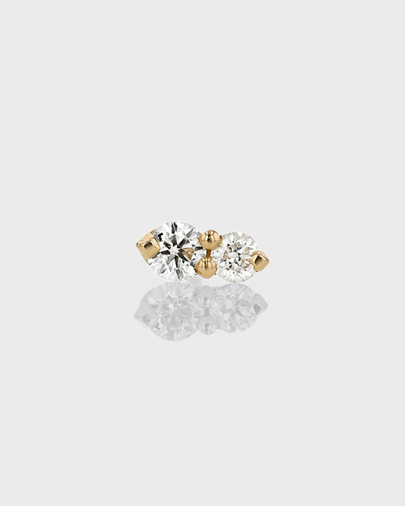 The Duet Cartilage Earring is a simple and classic stud featuring a poetic duo of petite round diamonds, with one slightly larger than the other to create a gradient effect. Inspired by our Ouroboros Daith Hoop, this piece completes the suite including the Quartet Earring and Double Ouroboros Hoop. Crafted in 18-karat solid gold, this style is only available to purchase as a single piece and is suitable for initial piercings.