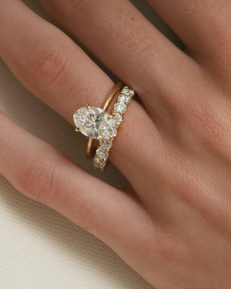 Experiment with design details that make up a SARAH & SEBASTIAN Engagement Ring. The Oval Engagement Ring features a 4 claw oval cut diamond on a fine tapered band. All elements of this ring including band style, metal, carat and colour can be made bespoke as per your budget and request.