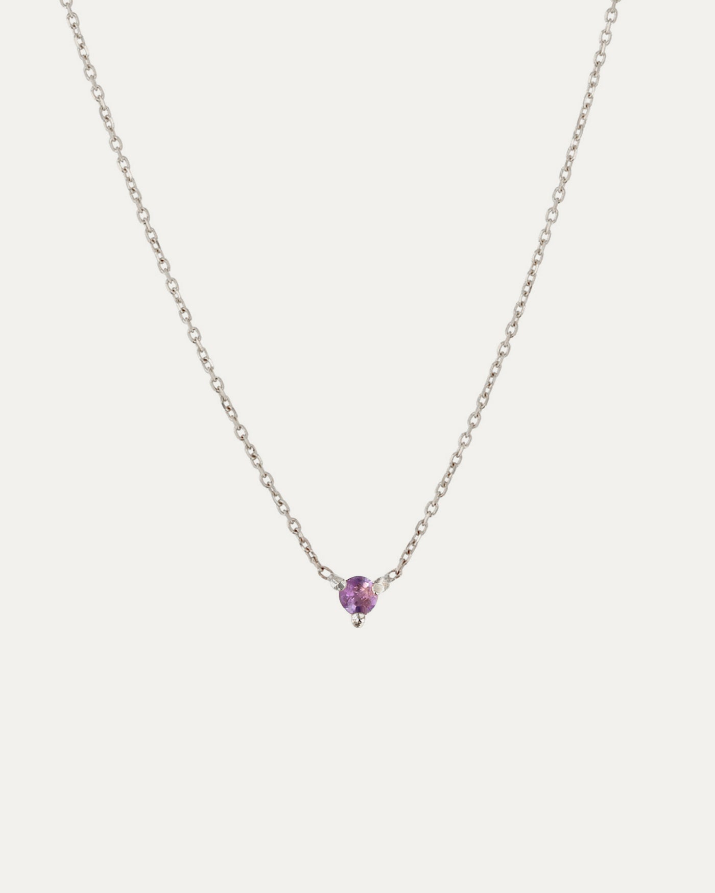 The Amethyst Birthstone Necklace is made in 14-karat gold and strung on our signature fine chain. Featuring precious gemstones corresponding to the month you were born. February's amethyst has the symbolic meaning of passion & hope to calm the spirit.