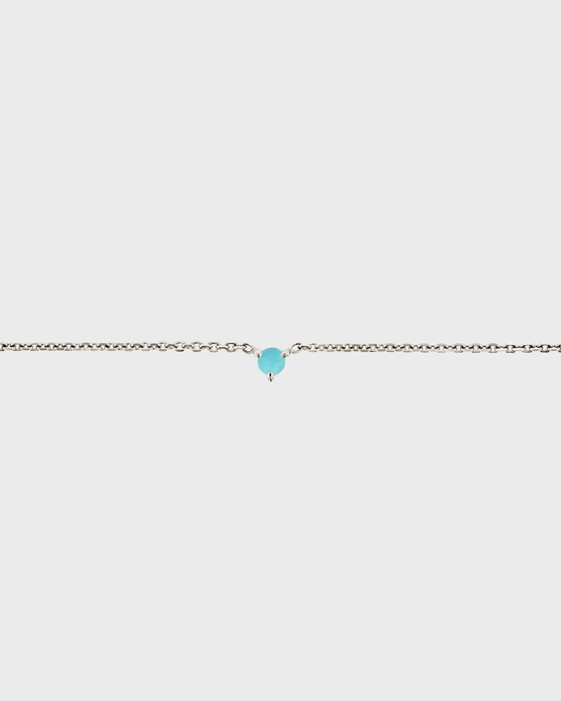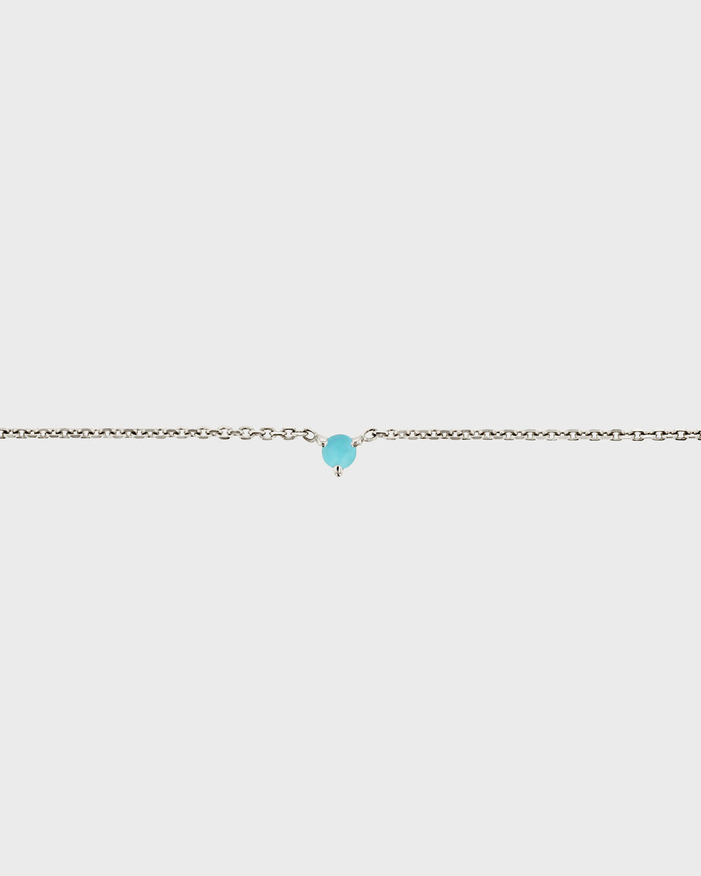 The Petite Turquoise Birthstone Bracelet is made in 14-karat gold and strung on our signature fine chain. Featuring precious gemstones corresponding to the month you were born. December's turquoise has the symbolic meaning of tranquil energy and enduring love.