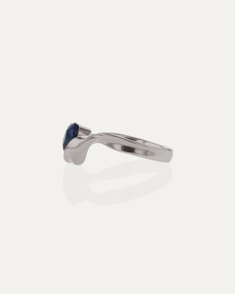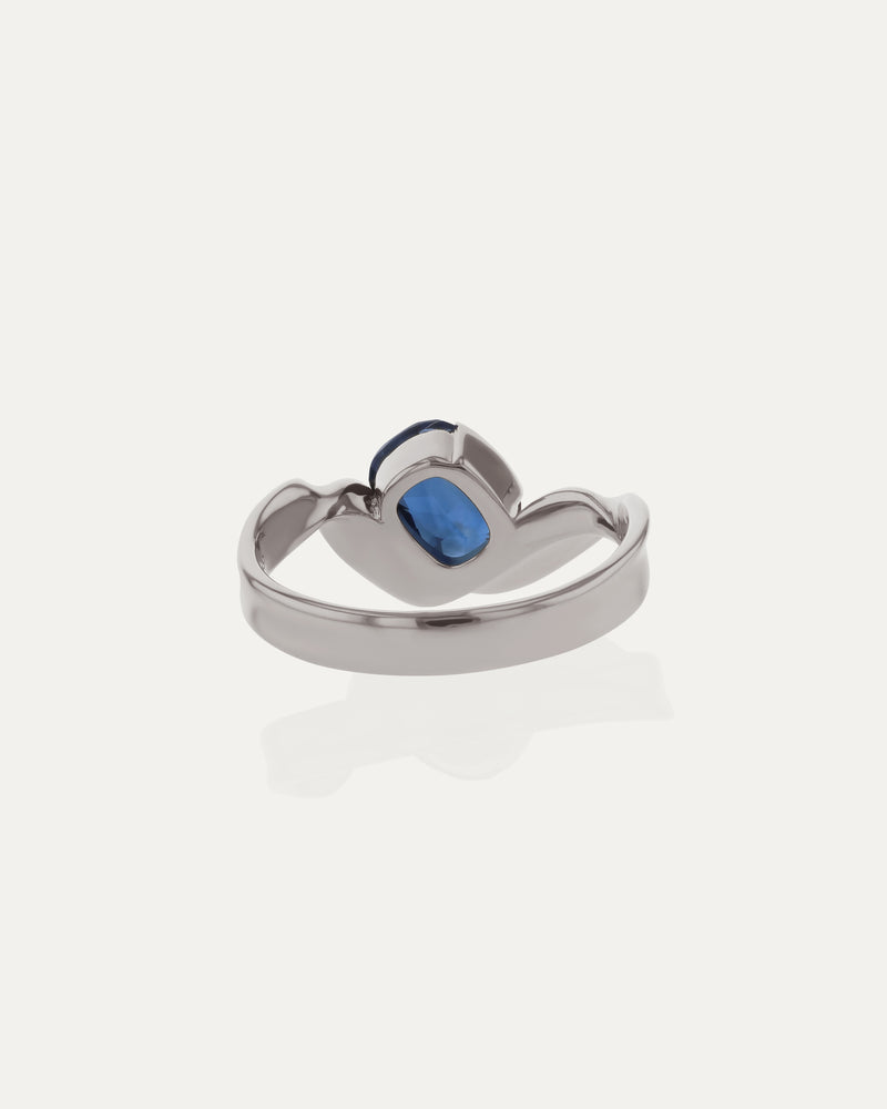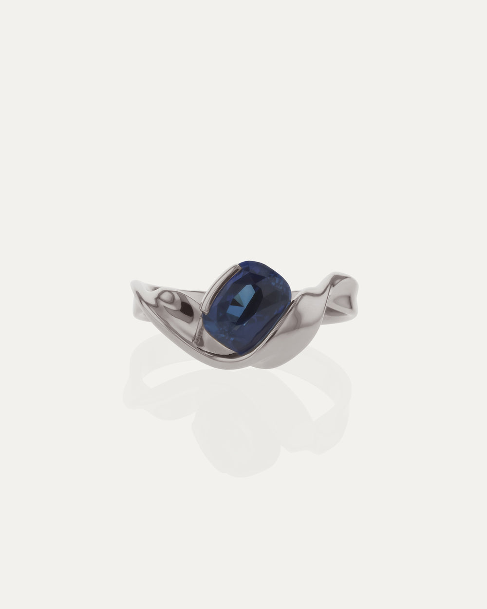 Sculpted in 18 karat gold, the Marine Cushion Sapphire Ring features a natural cushion-cut sapphire, set within a sculptural band.