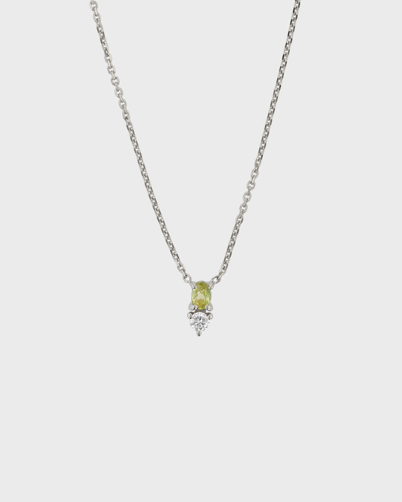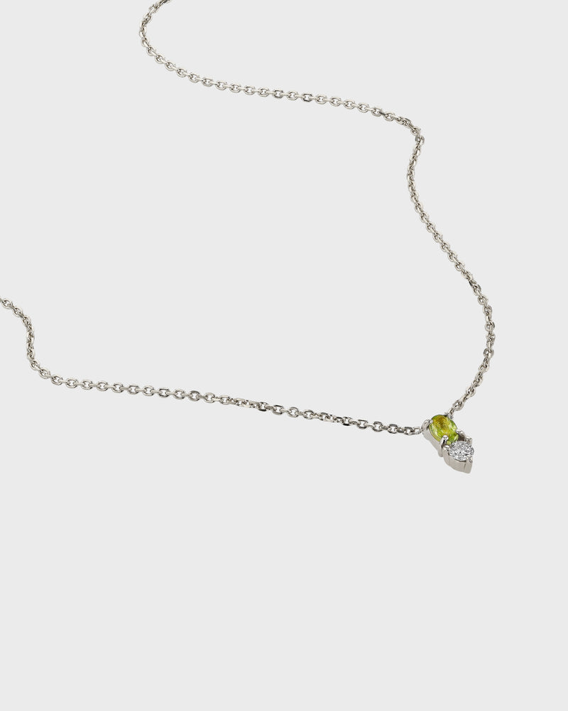 Handcrafted in 18-karat gold, the Micro Sand Diamond Necklace is inspired by the unique beauty of sand a microscopic scale. It features a dewy peridot cabochon and diamond cluster set on our signature fine chain.