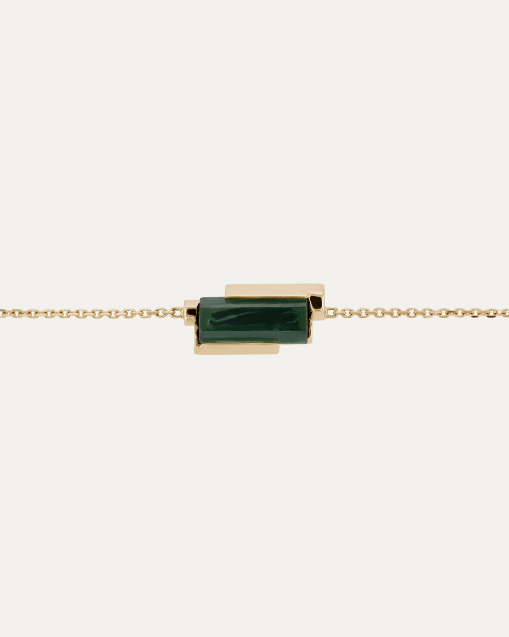 With a custom-faceted Nigerian tourmaline encased in a geometric setting, the Tourmaline Pillar Bracelet draws inspiration from natural architectural formations.