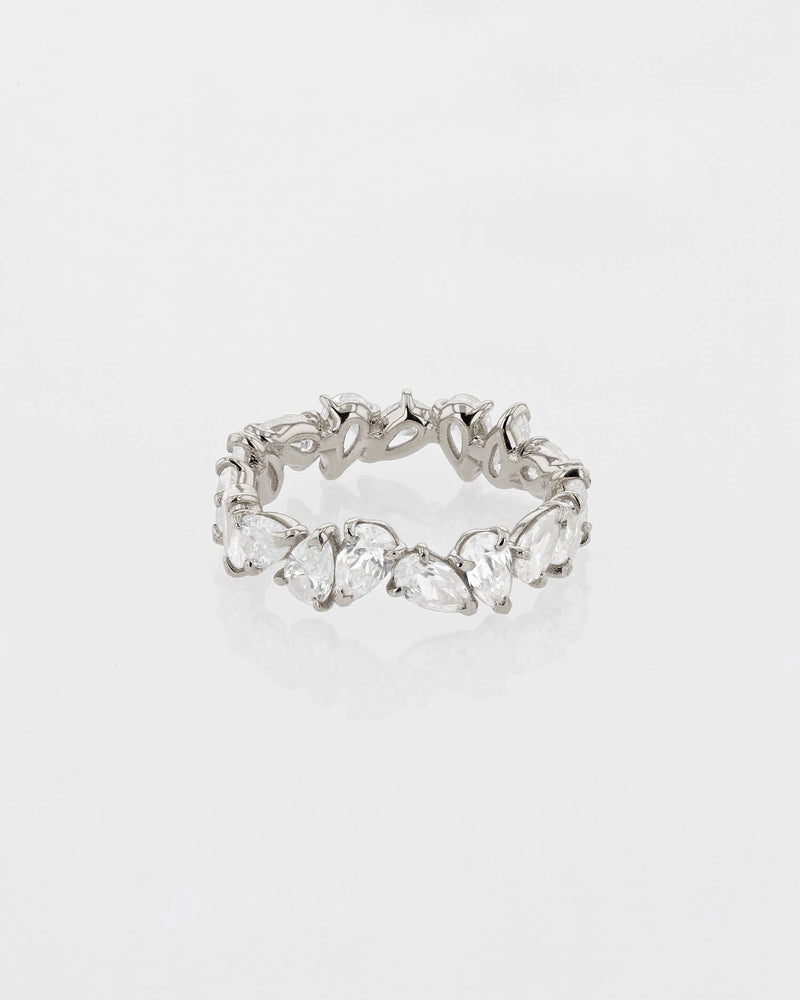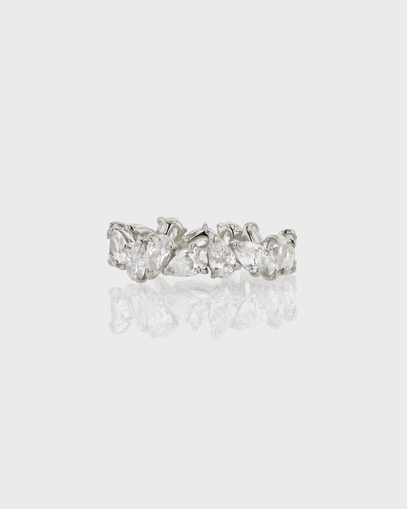 Sarah & Sebastian creative director Sarah Gittoes was inspired by endless love when she crafted the Endless Pear Diamond Ring. An unconventional engagement ring or simply a piece to wear and treasure forever, this ring features a cluster of pear cut diamonds claw set along an 18-karat gold band.