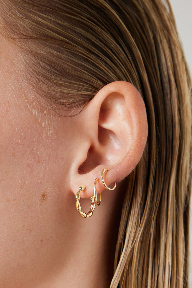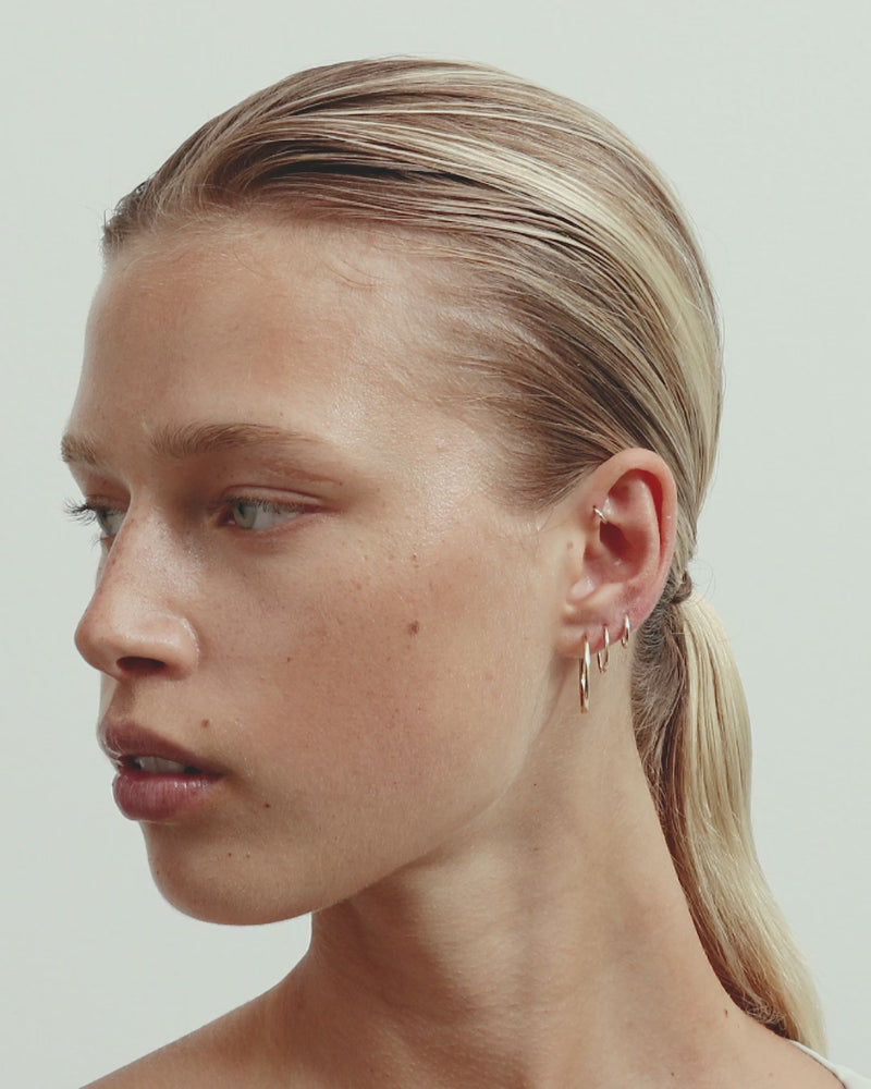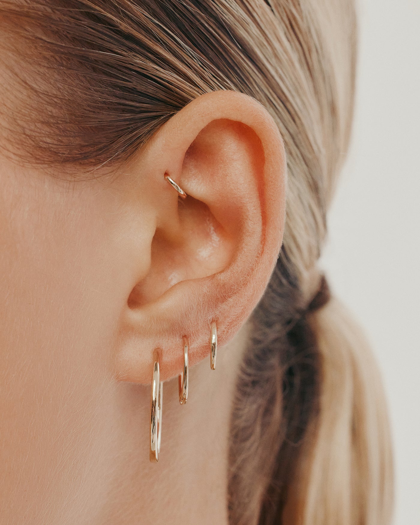 The Fine Hoops are an essential everyday earring, crafted with versatility in mind. Hand-crafted in 18-karat yellow gold with an easy clicker-style fastening, they are offered in five sizes suited to lobe, cartilage and other piercings.