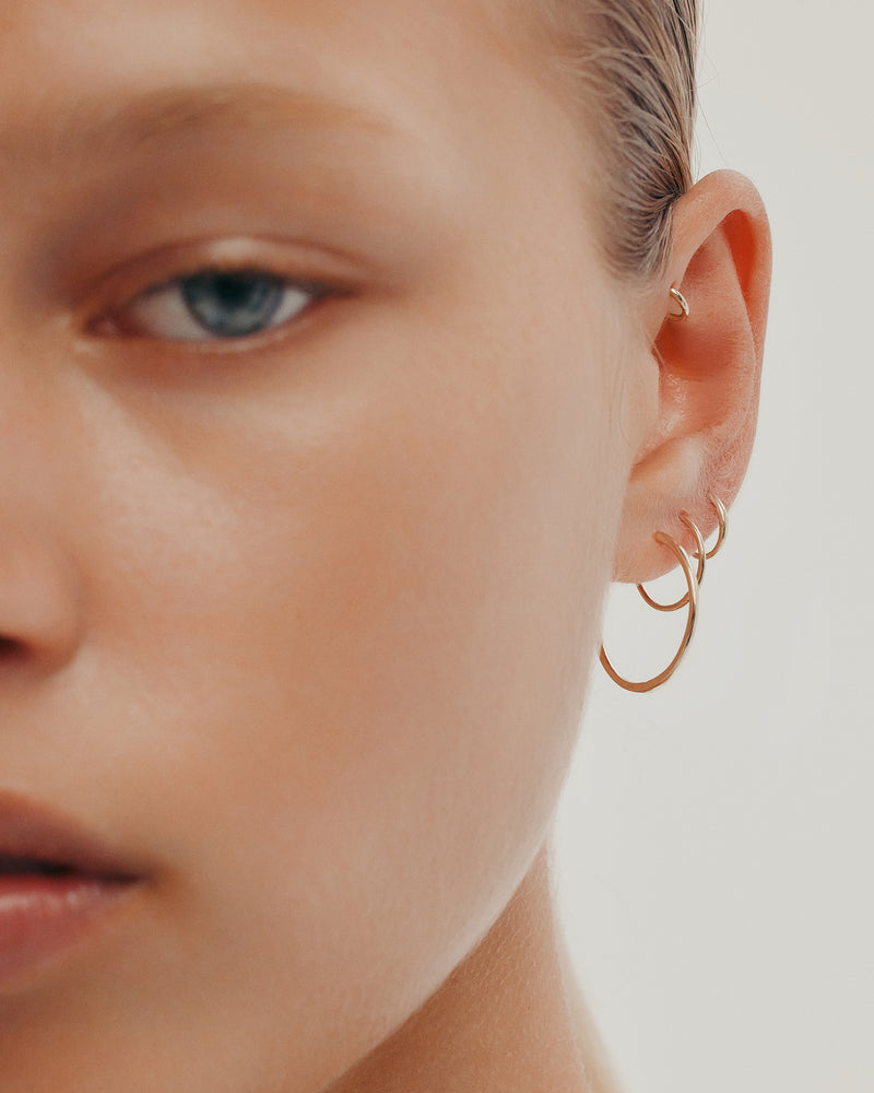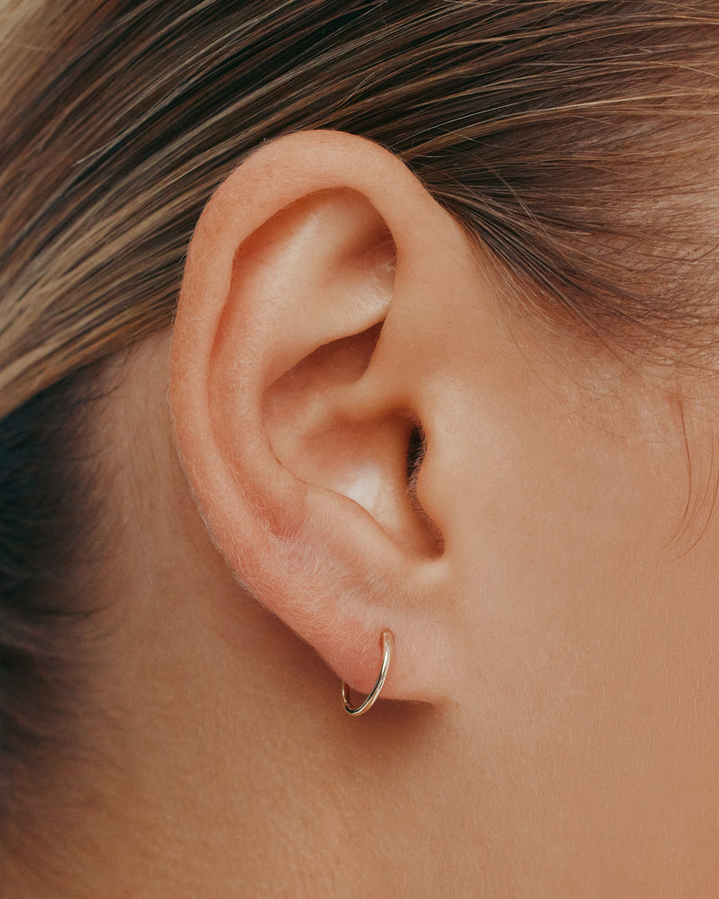 To ensure longevity, handle your hoops carefully. To open your hoops, gently pull each side slightly apart. Once you’ve put your earring in, click the two ends back into place. Use a mirror or have someone help to make this process easier.