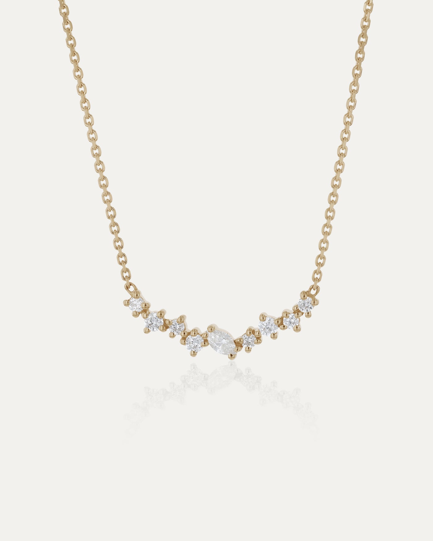 Our Gossamer Necklace features Sarah & Sebastian’s signature fine gold chain, which supports a light-catching pendant made of marquise and round diamonds.