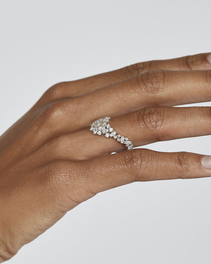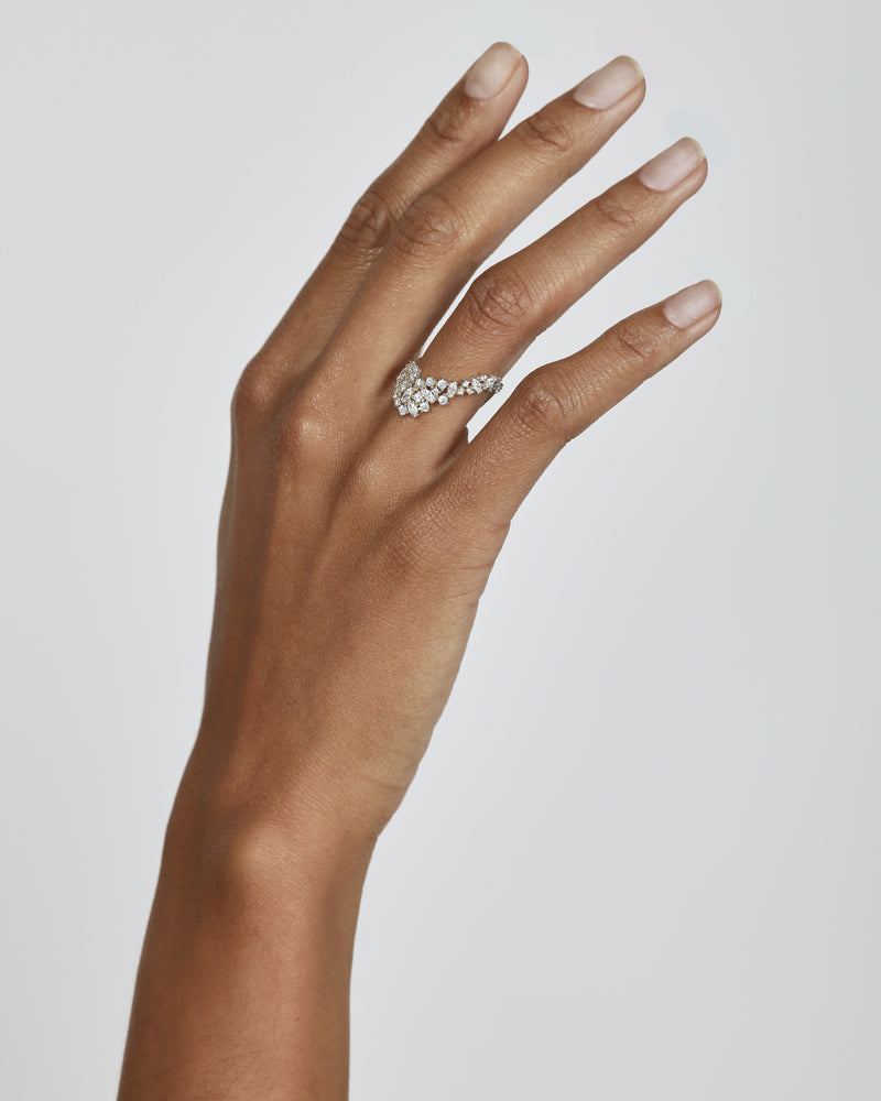 Creative Director Sarah Gittoes took inspiration from the white foam of crashing waves when she designed the Gossamer Ring. A statement piece, it features a cluster of marquise-cut white diamonds with a total weight of 1 carat.