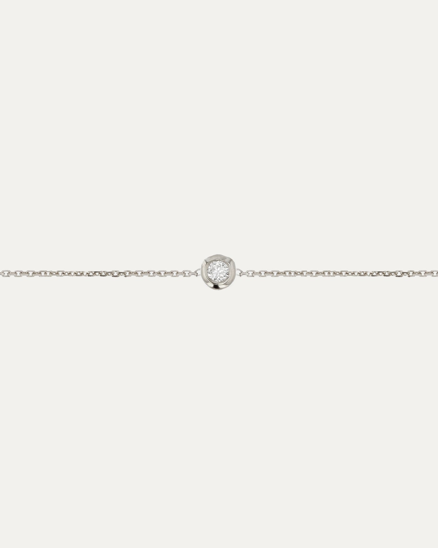 A timeless staple, the Lunette Bracelet features a single white diamond in a refined bezel setting, anchored to our signature fine chain.