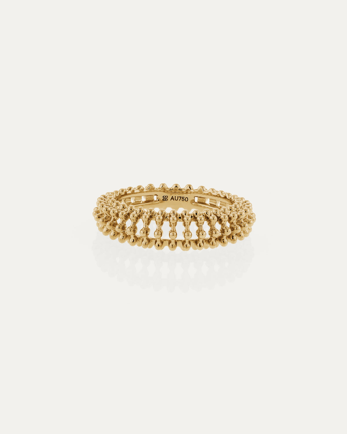 A delicate framework of polished beads casts a voluminous silhouette to create the Medusa Hoops. Designed in our Sydney studio from 18 karat solid yellow gold, this dynamic pair of earrings captures the otherworldly spirit of the AURELIA collection, mimicking the allure of sea jellies rising from the depths of the ocean.