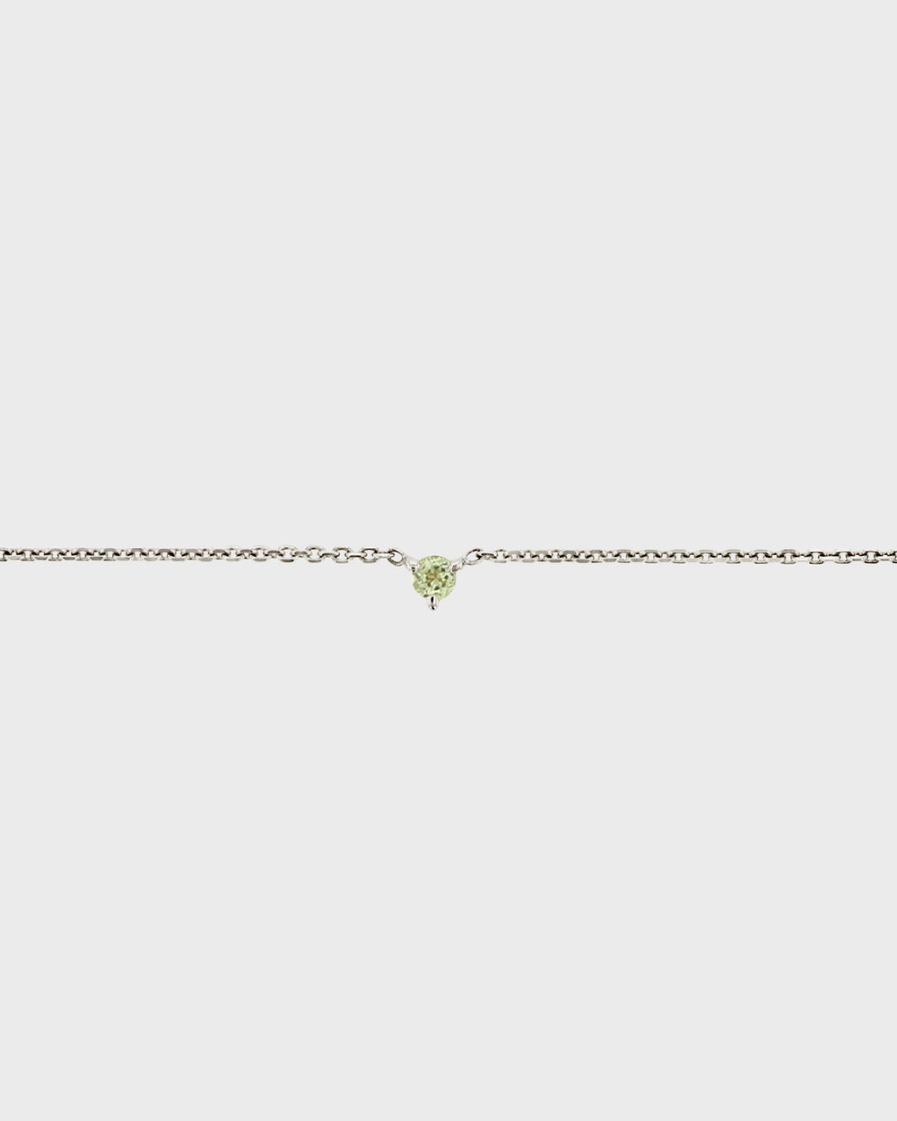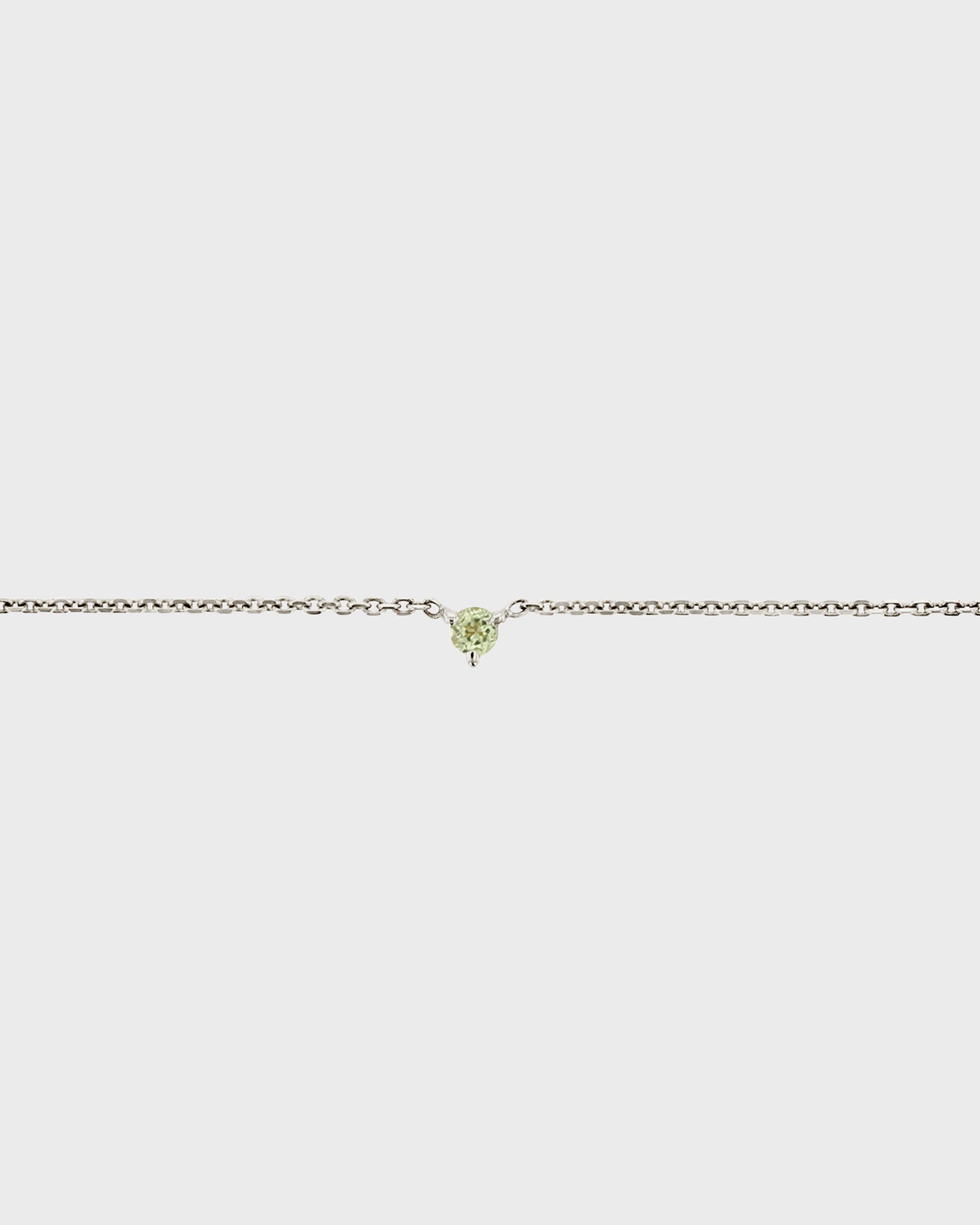 The Petite Peridot Birthstone Bracelet is made in 14-karat gold and strung on our signature fine chain. Featuring precious gemstones corresponding to the month you were born. August's peridot has the symbolic meaning of wisdom & protection from evil.