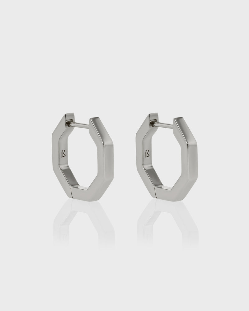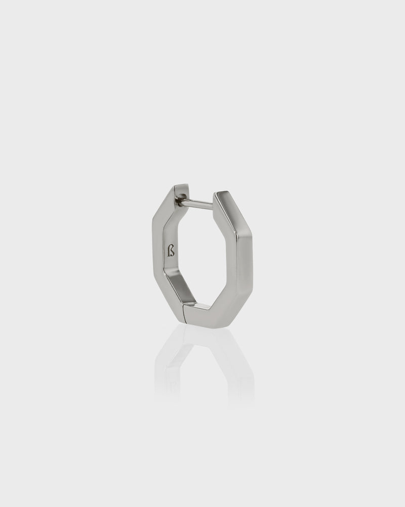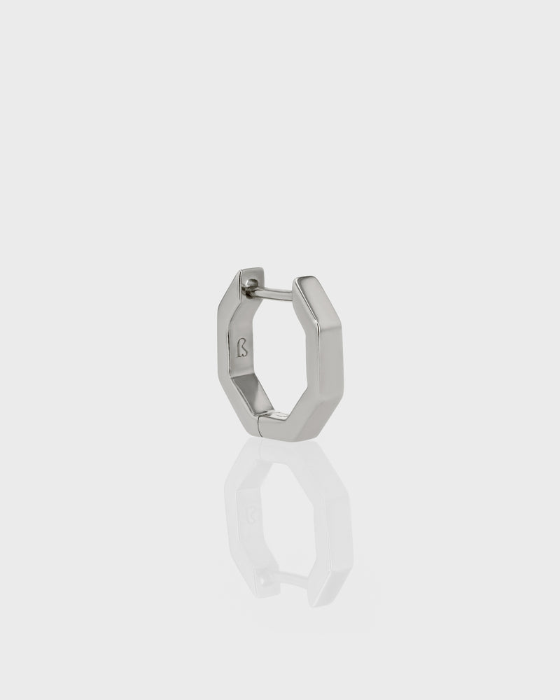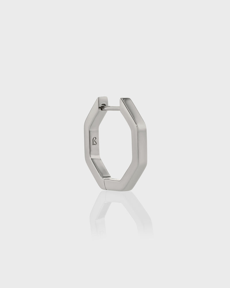 Crafted in 18-karat solid white gold, the Faceted Hoop is a minimalist octagonal piece designed for effortless ear styling. Available in three sizes - 8mm, 10mm and 12mm. Suitable for healed piercings only.