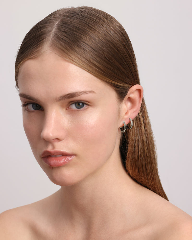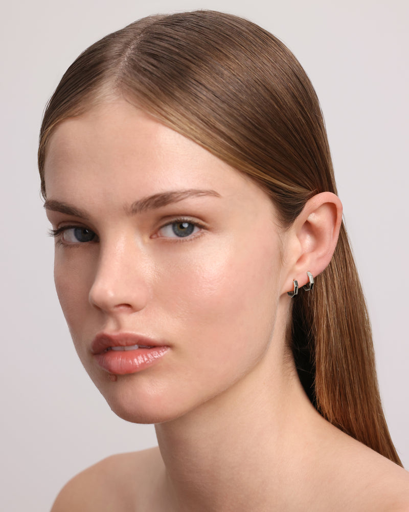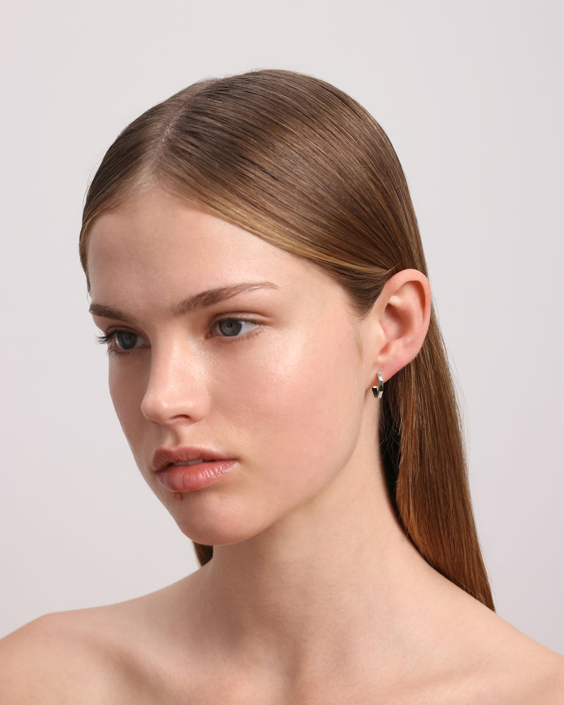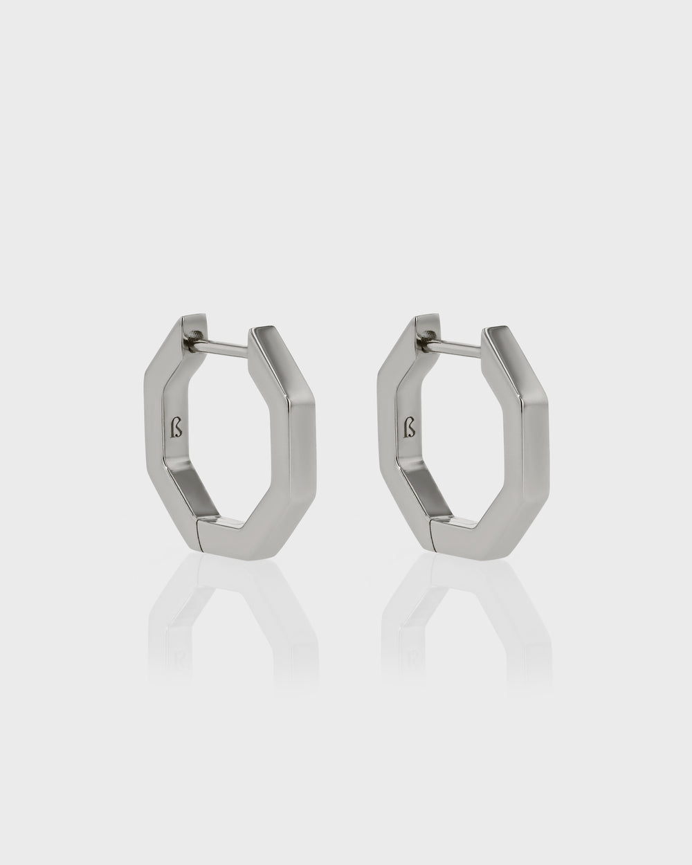 Crafted in 18-karat solid white gold, the Faceted Hoop is a minimalist octagonal piece designed for effortless ear styling. Available in three sizes - 8mm, 10mm and 12mm. Suitable for healed piercings only.