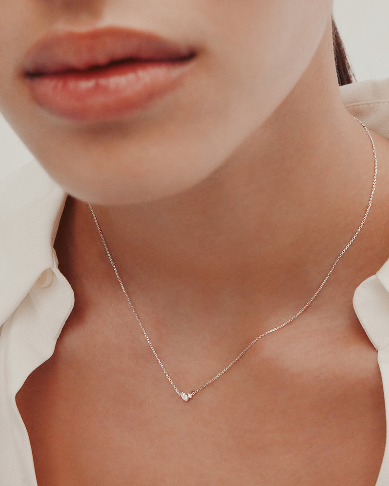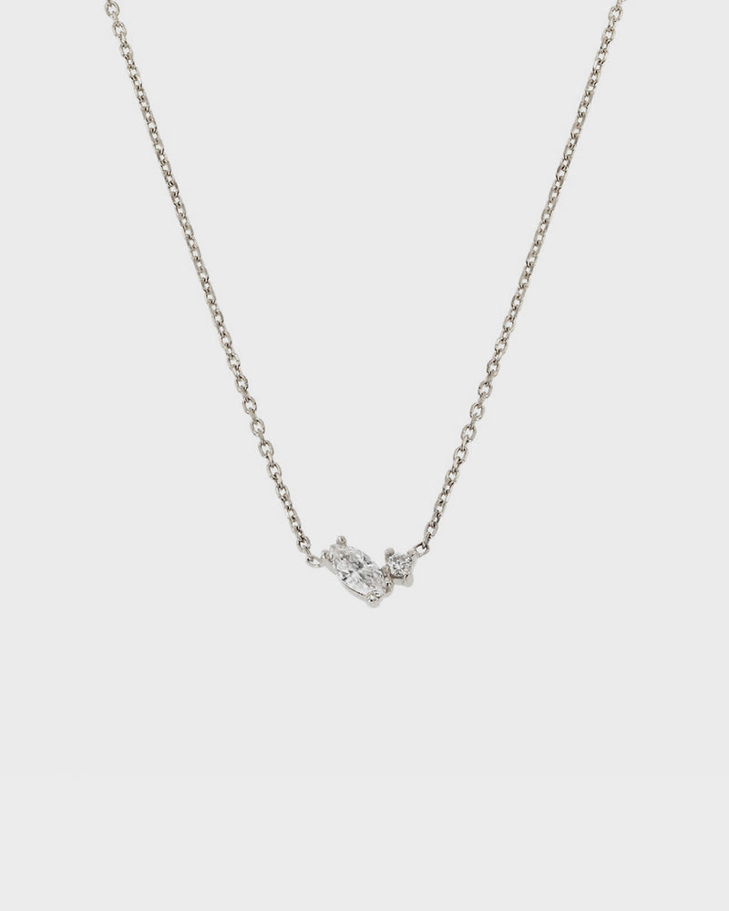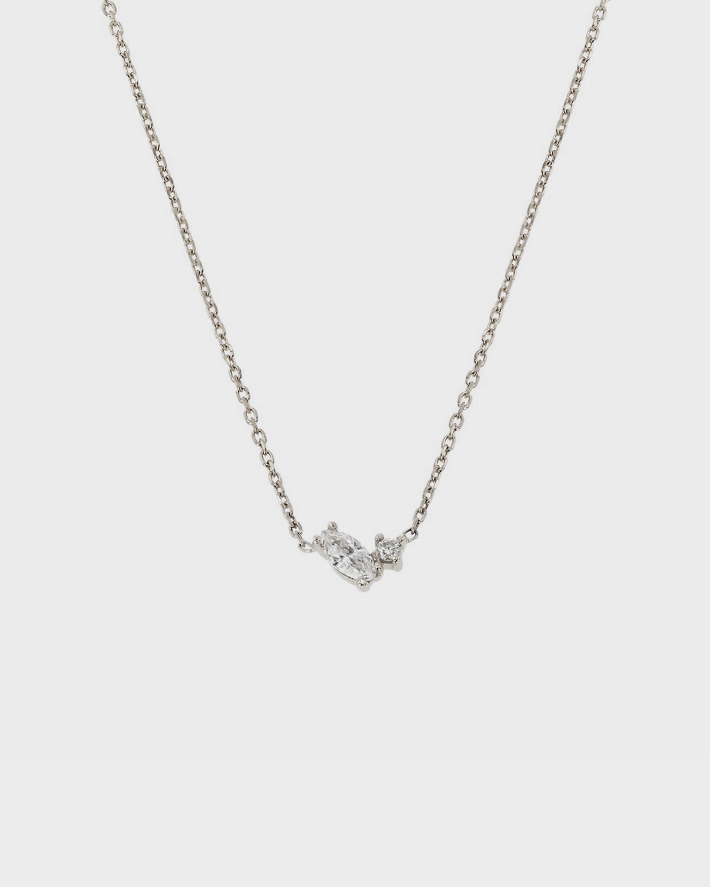 Designed in our Sydney studio and hand-crafted in 14-karat white gold, it features a marquise and round diamond set in a delicate claw pendant.