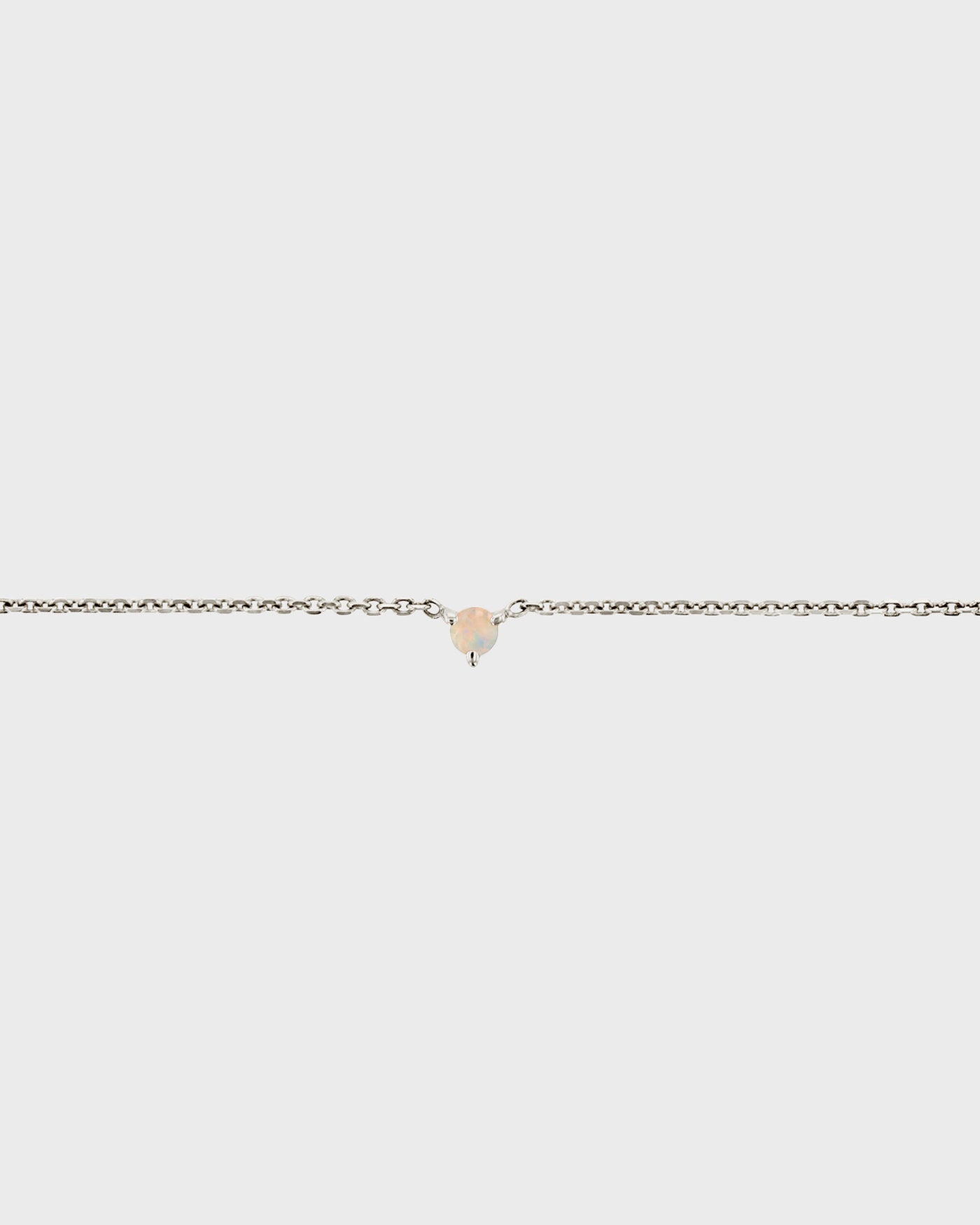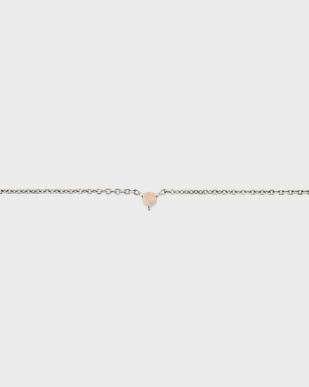 The Petite Opal Birthstone Bracelet is made in 14-karat gold and strung on our signature fine chain. Featuring precious gemstones corresponding to the month you were born. October's opal has the symbolic meaning of a soother of sadness & envy.