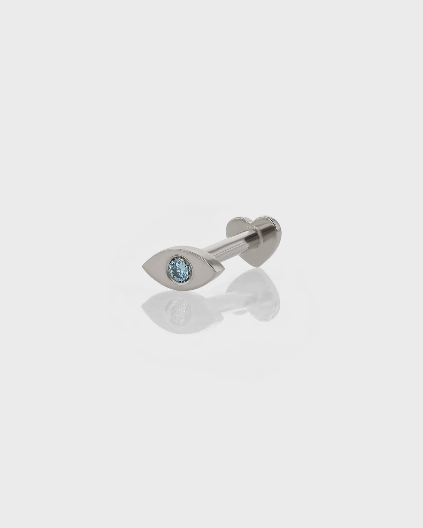 Inspired by the classic evil eye amulet believed by various cultures as a symbol of safety and protection against negative energy, the Evil Eye Cartilage Earring is a pared-back everyday stud. Featuring a petite blue diamond set within a platinum eye shape, this is the perfect minimalist piece to build a considered Ear Alchemy with other cartilage jewellery, hoops and earrings from the SARAH & SEBASTIAN collection. Suitable for initial piercings and available to purchase as a single piece.