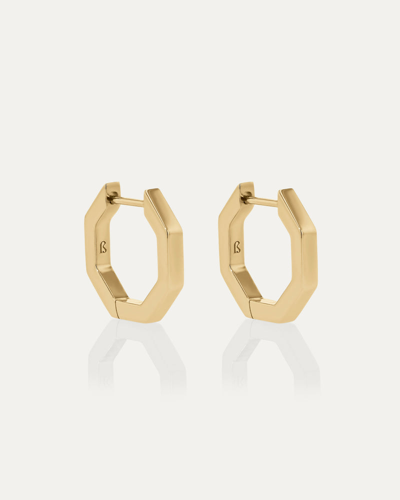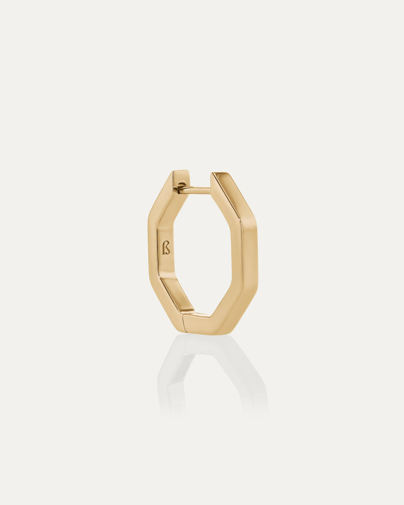 Crafted in 18-karat solid yellow gold, the Faceted Hoop is a minimalist octagonal piece designed for effortless ear styling. Available in three sizes - 8mm, 10mm and 12mm. Suitable for healed piercings only.