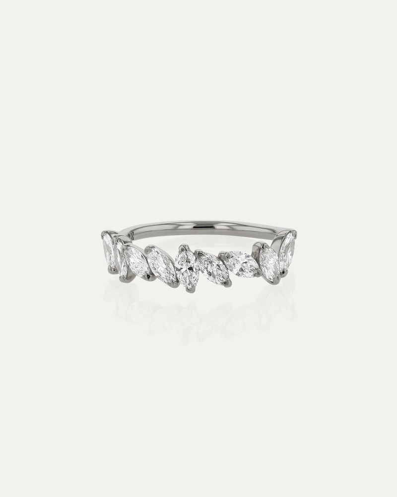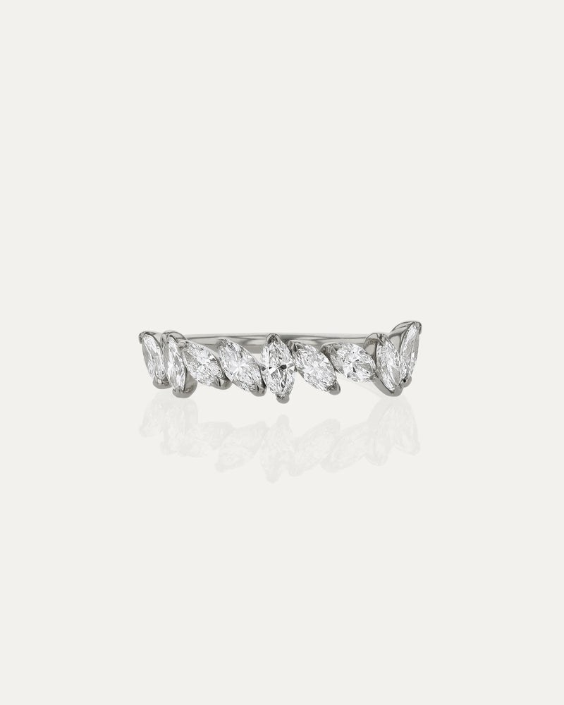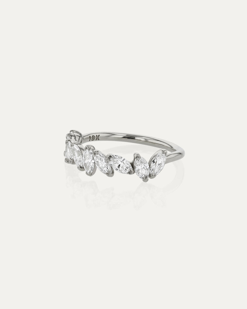 Sarah & Sebastian creative director Sarah Gittoes was inspired by endless love when she crafted the Half Endless Marquise Diamond Ring. An unconventional engagement ring or simply a piece to wear and treasure forever, this ring features a cluster of marquise cut diamonds claw set, halfway around on a 18-karat gold band.
