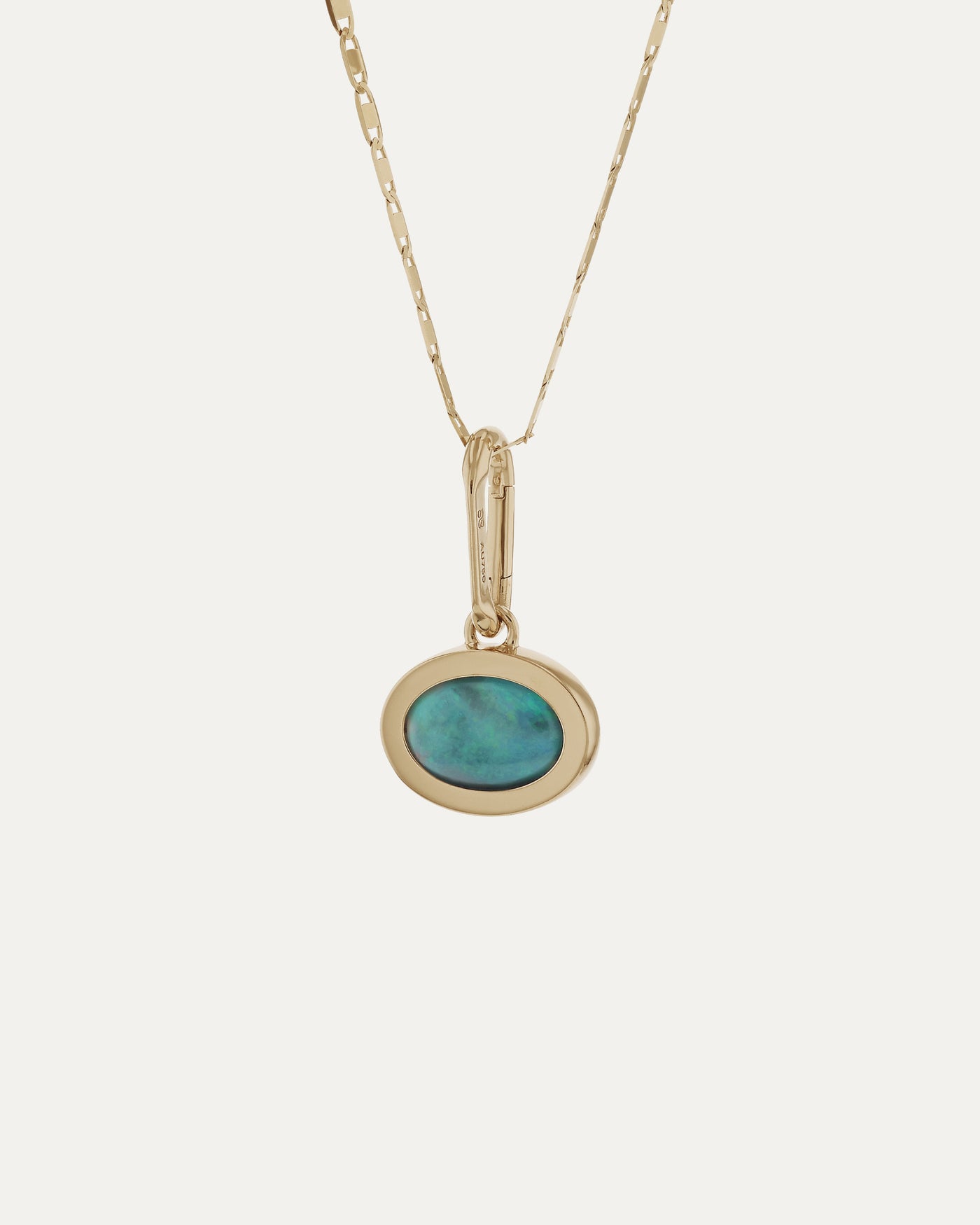 Suspended from a carabiner hook, the Lightning Ridge Opal Carabiner VI offers a unique addendum to classic chains. Crafted in our Sydney studio from 18 karat solid yellow gold, the voluminous pendant setting features a one-of-a-kind dark crystal Lightning Ridge opal – each stone is hand-selected by SARAH & SEBASTIAN’S Creative Director Sarah Gittoes. Fasten the charm to a necklace of your choosing.