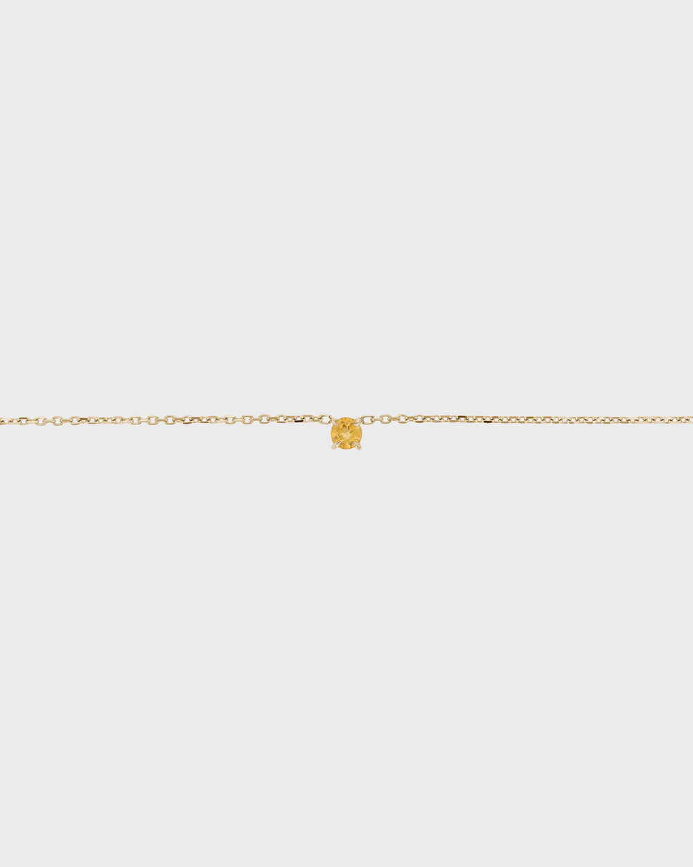The Citrine Birthstone Bracelet is made in 18-karat gold and strung on our signature bold chain. Featuring precious gemstones corresponding to the month you were born. November's citrine has the symbolic meaning of intellect & remover of negativity.