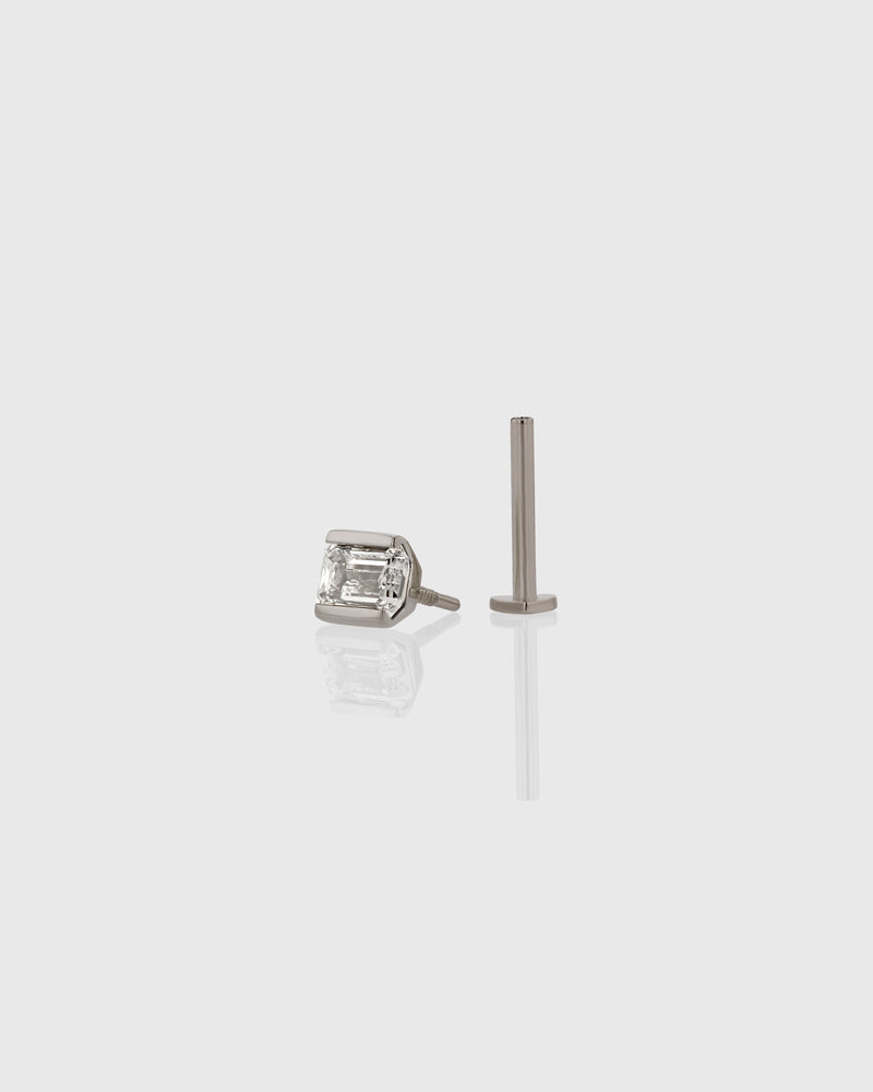 Build a brilliant Ear Alchemy with the Emerald Suspense Cartilage Earring featuring an internally threaded post for smooth fit and comfort and our signature flat heart backing. Sold as a single piece, it heroes a 0.25-carat round-cut natural diamond held in balance with our suspense-style setting.