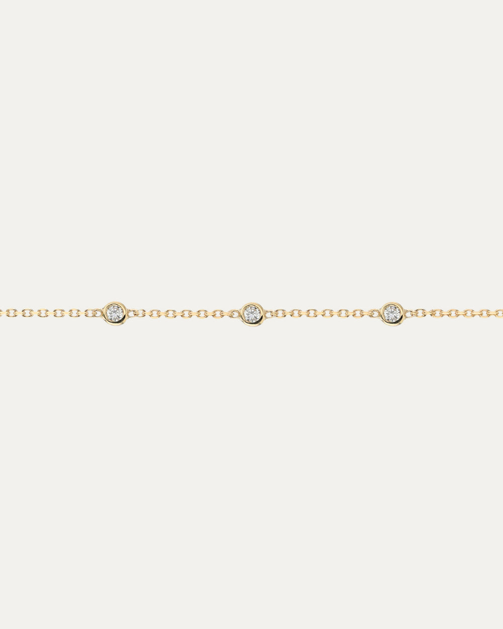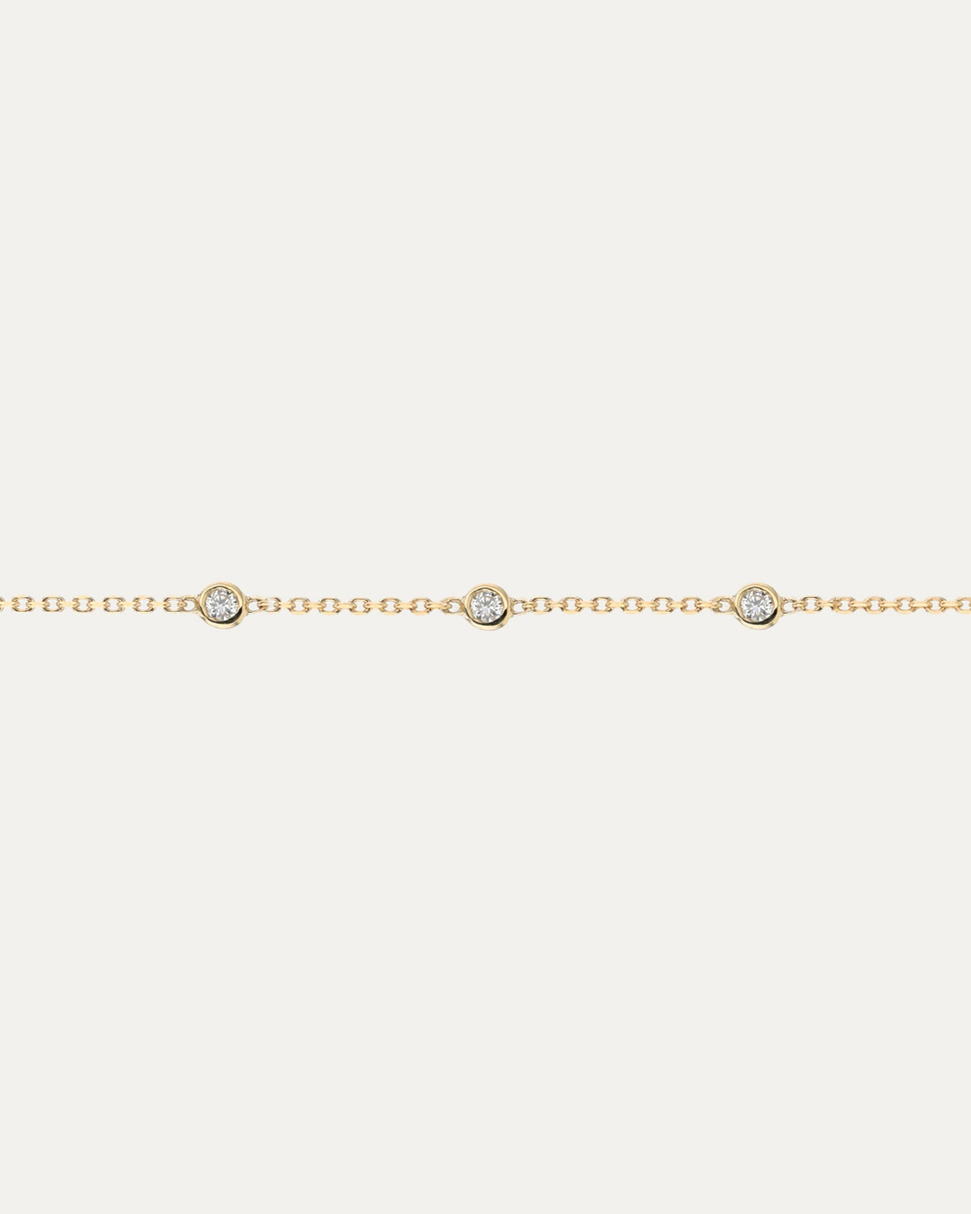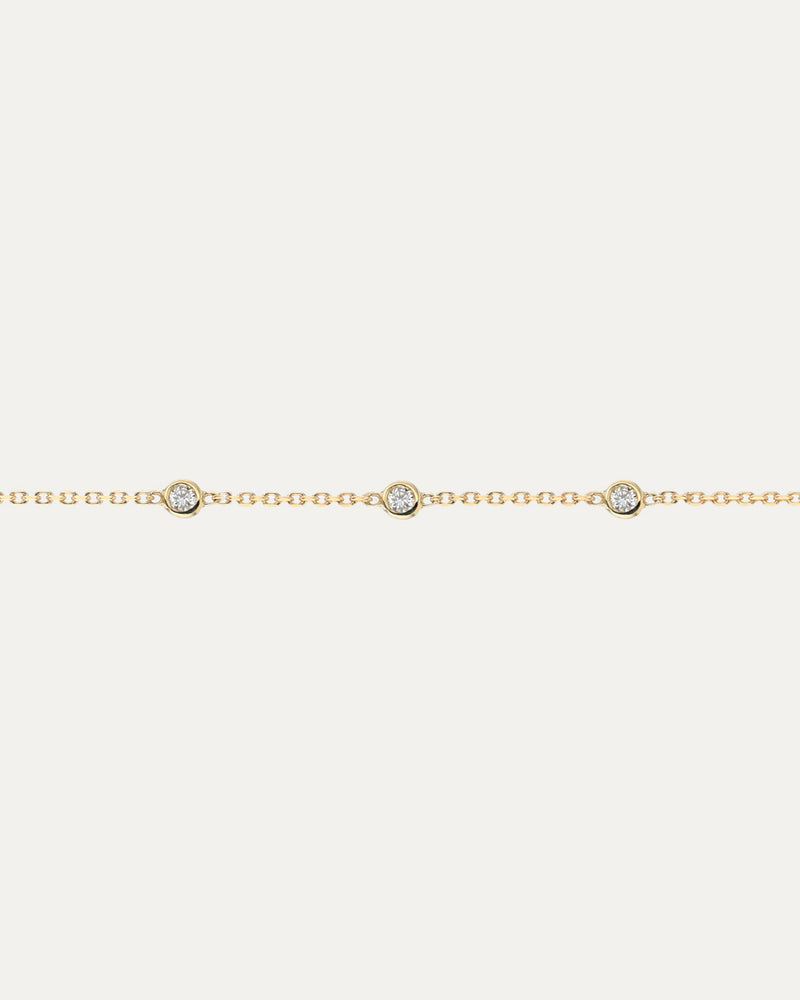 One of our most cherished designs, the Diamond Soldered Chain 03 is a refined delicate style for a permanent Soldered bracelet featuring three fixed petite diamonds.
