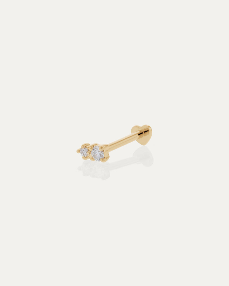 Our internally threaded earrings feature a thread attached to the front pendant which screws into the hollow end of the backing post. As the threaded closure may loosen due to everyday wear, we recommend occasionally checking your earrings and screw clockwise to tighten. Never press your earring together as the thread can dislodge from its channel and become unsecured.