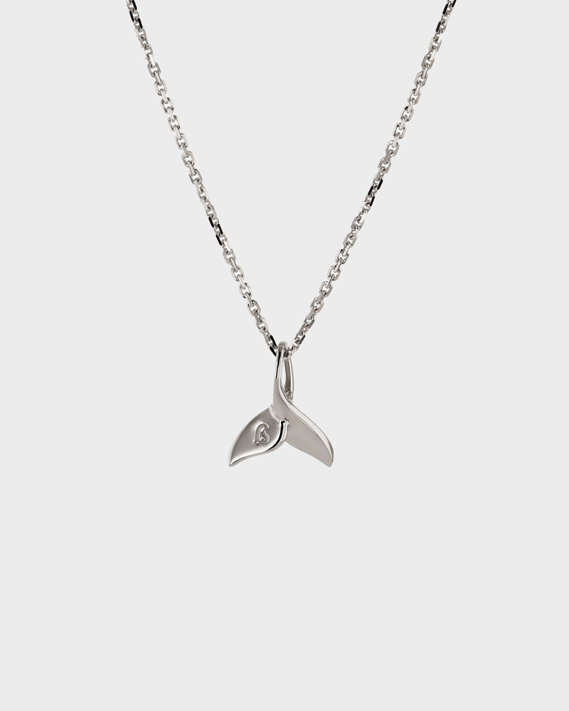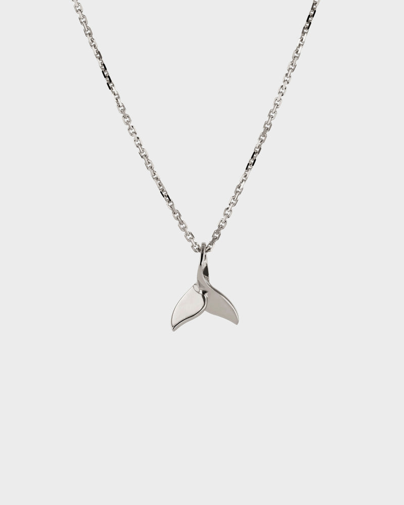 Crafted in 18-karat white gold, the Petite Whale Necklace is a minimalist sculpted design echoing the three-dimensional form of a majestic whale fluke as it emerges from the rolling waves and spins in a captivating dance.