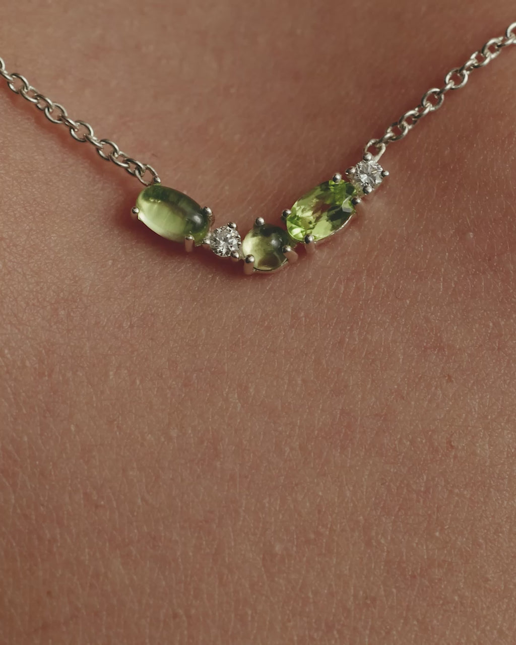 Now handcrafted in sterling silver, the Sand Diamond Necklace features a cluster of dewy peridot cabochons and sparkling diamonds, inspired by sand viewed under a microscope. Suspended from our signature fine chain, it can be worn alone for subtle detail or layered for a considered, textural look.